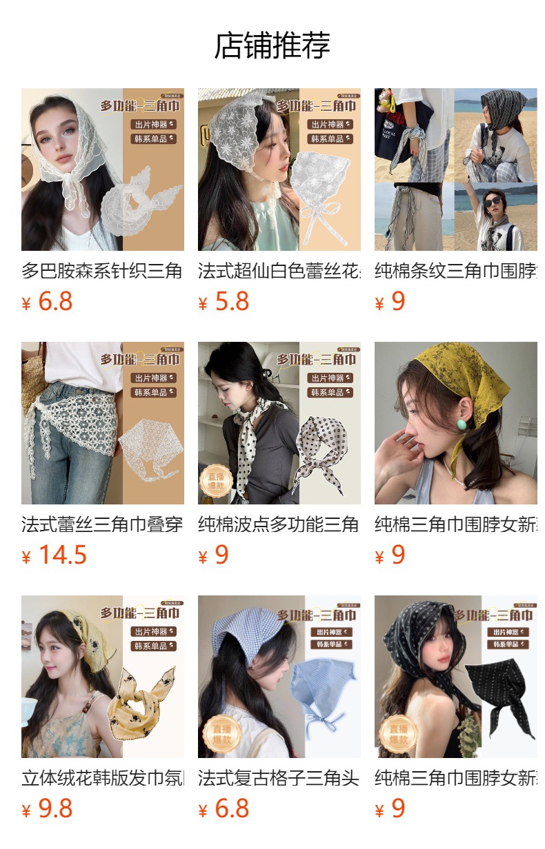 純綿波点多機能三角タオル韓系レトロファッションスカーフ