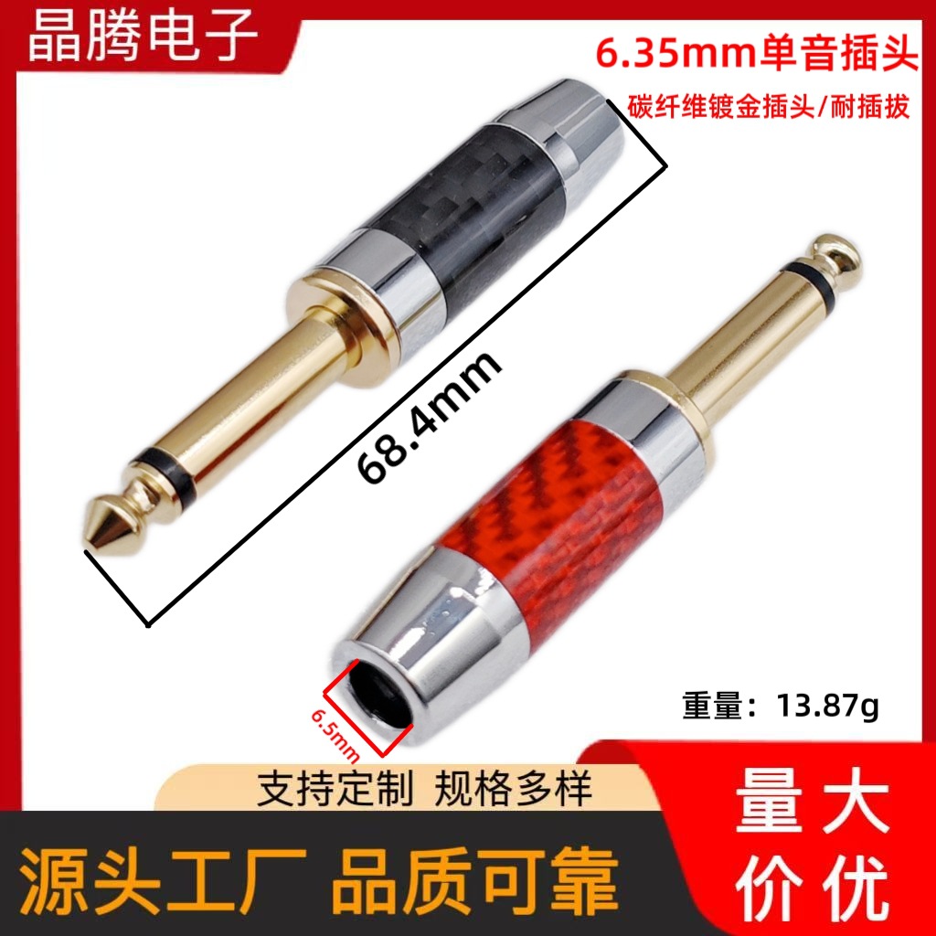 碳纤维6.35音频插头 6.5焊接插头 6.35吉他插头 6.35单声道插头