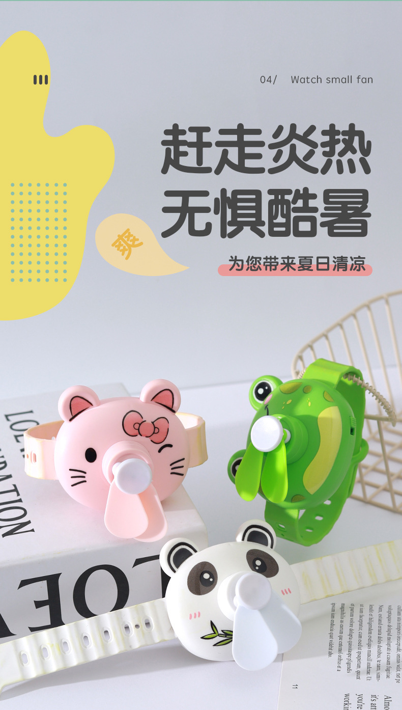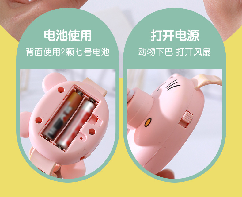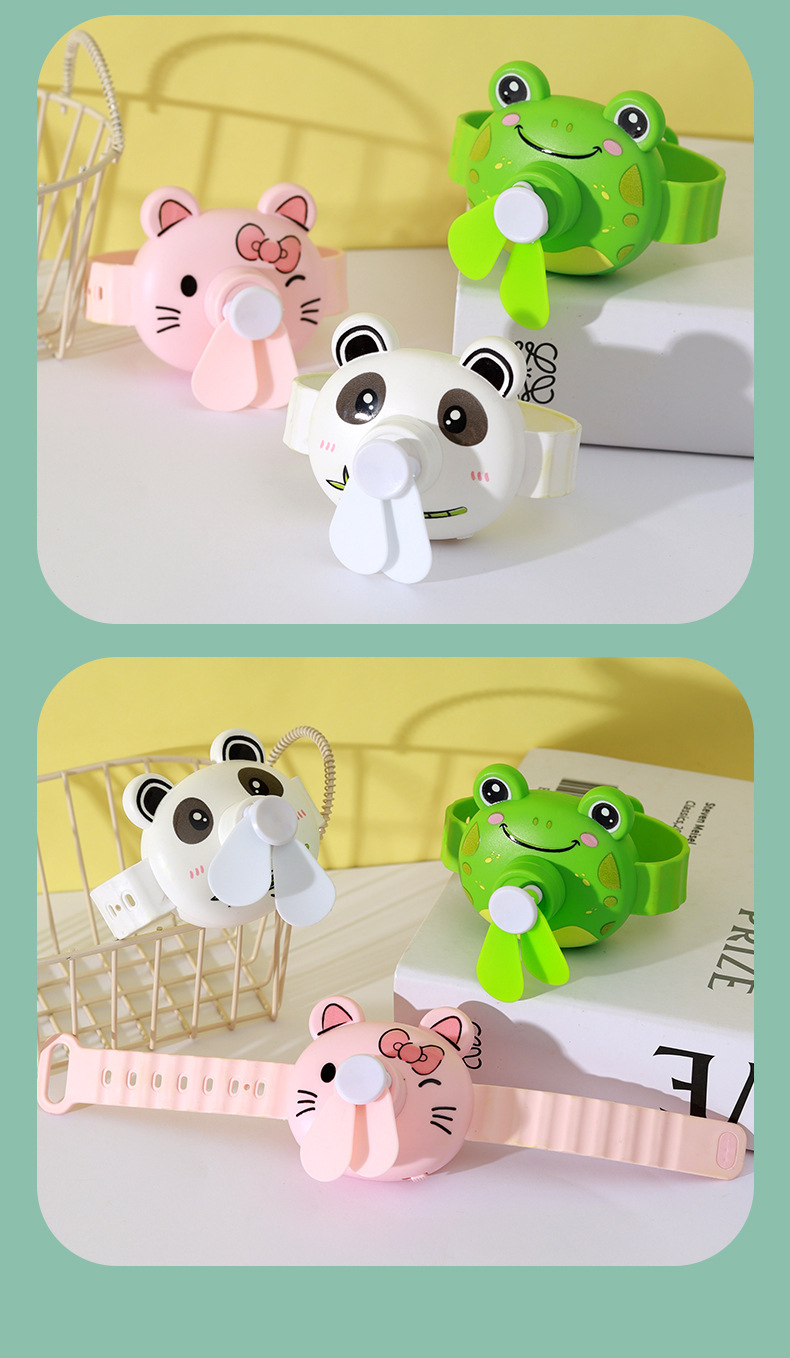 国境を越えた卸売子供の漫画の時計ファン乾電池パンダハンドヘルド小型ファン屋外ポータブル猫ファン