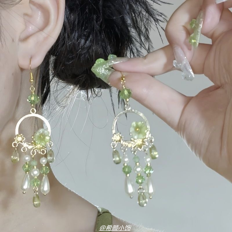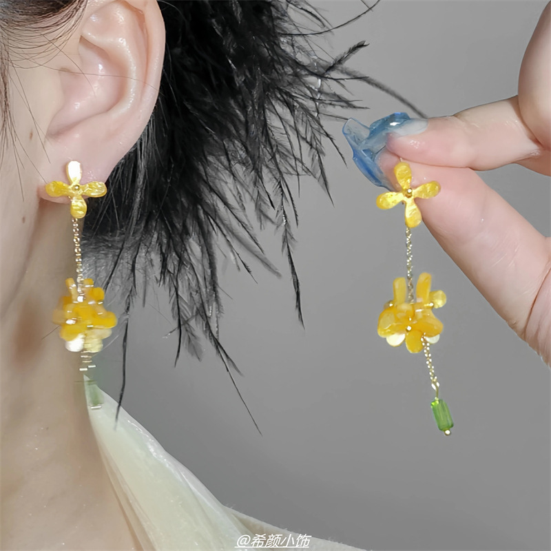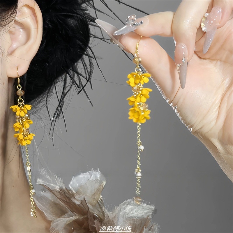 「迎春」超仙長型桂花流蘇イヤリング小衆軽豪華森系小清新長型休暇耳飾り女