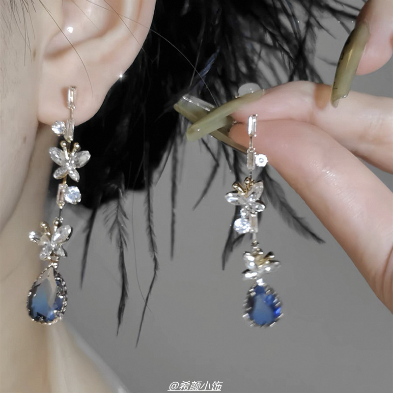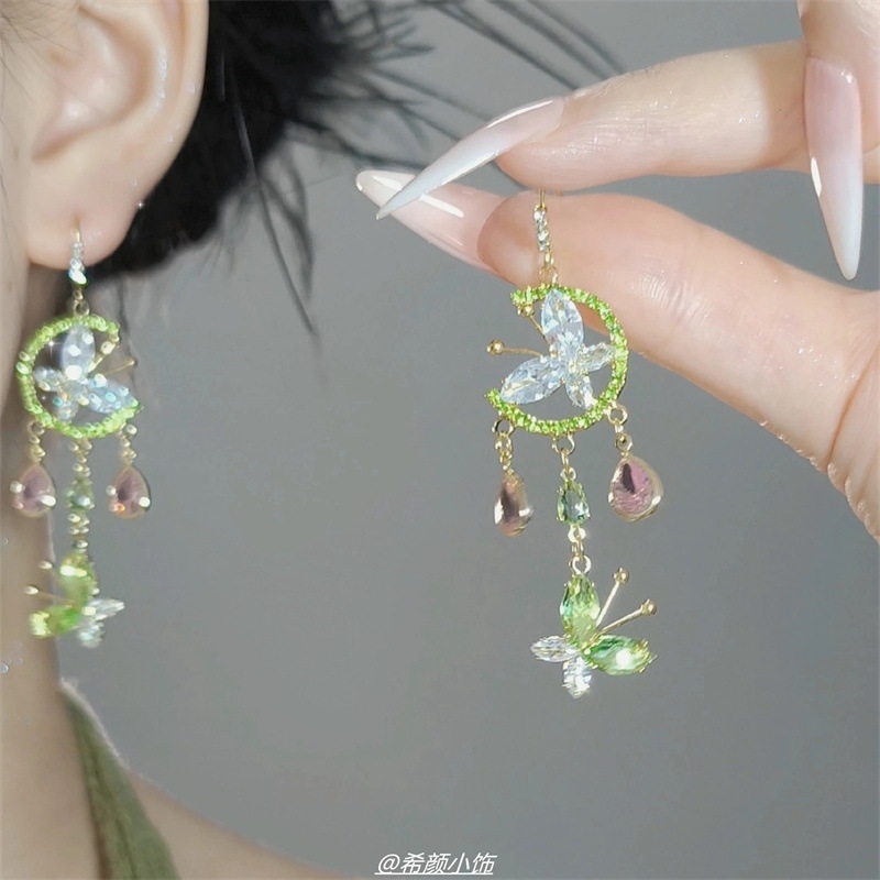 ダイヤモンドバタフライタッセルドロップイヤリング夏の海辺の休暇スタイルのイヤーフックイヤリングデザイン気質イヤリング