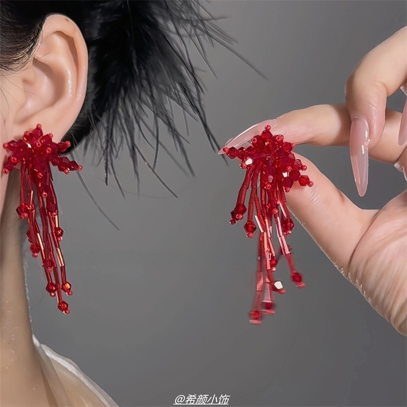 「バラの恋人」新年のワインの赤い植毛の花のフリンジのピアス