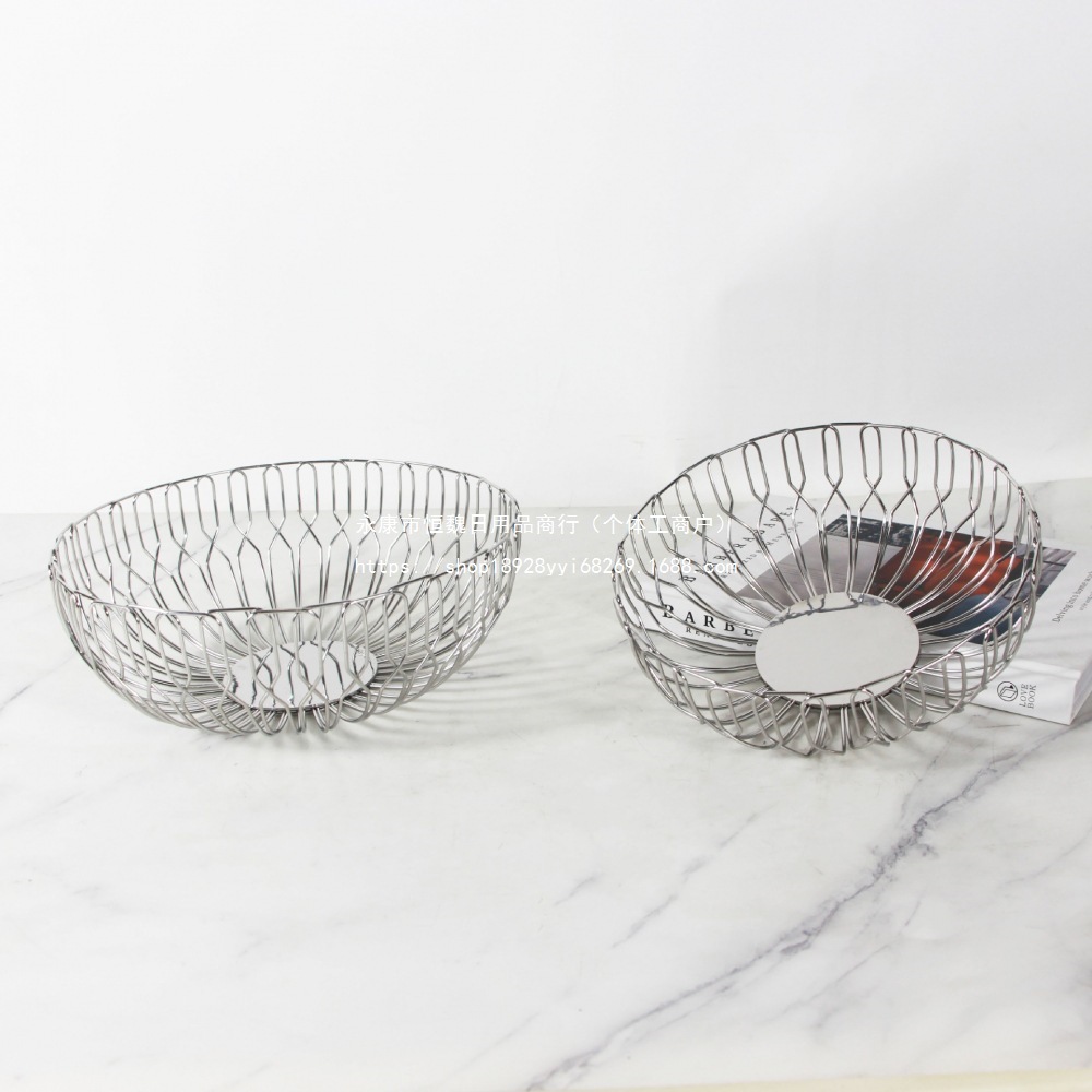 简约不锈钢圆形果篮客厅家用茶几果盘摆件不锈钢置物蓝面包篮无