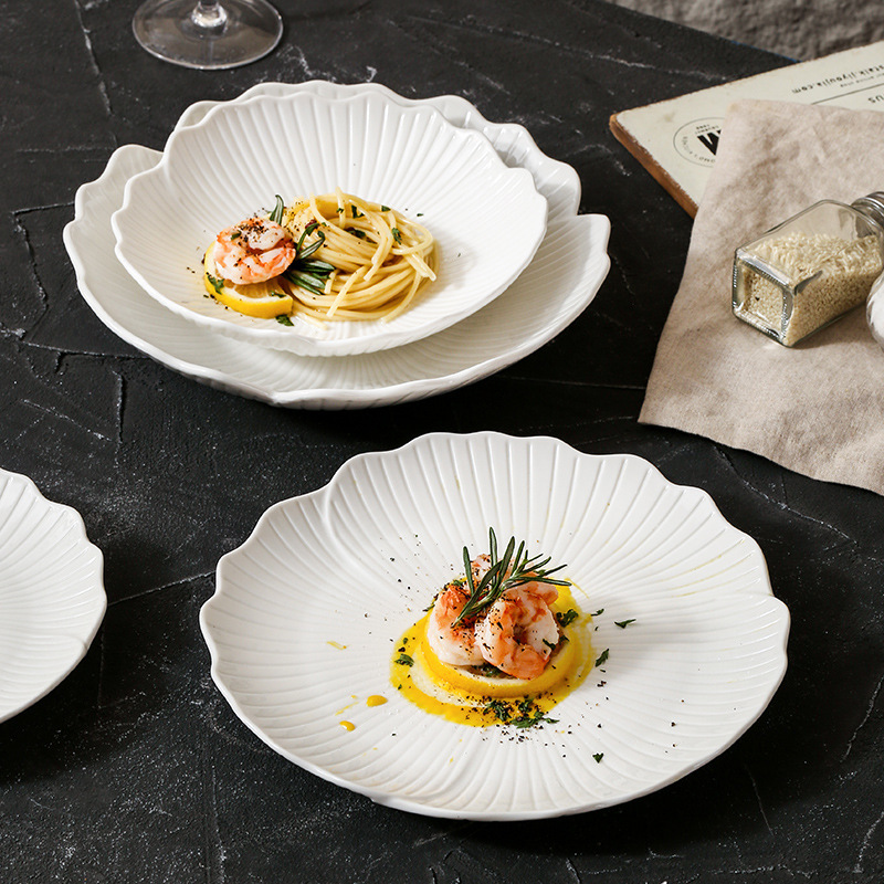 白い陶磁器の業務用サラダ碗の果物の皿の深い料理の皿のステーキの皿の魚の皿のデザートの皿の洋食の高級感の碗の皿