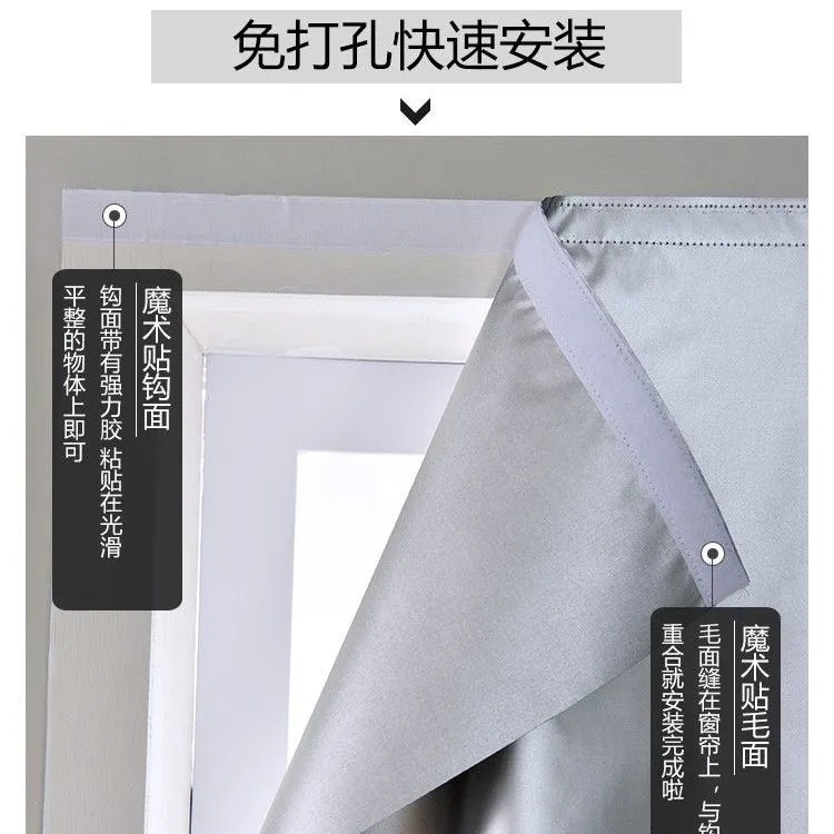 簡易自己接着100% 全遮光カーテン生地穴なしマジックテープ取付寝室日よけ2024新型
