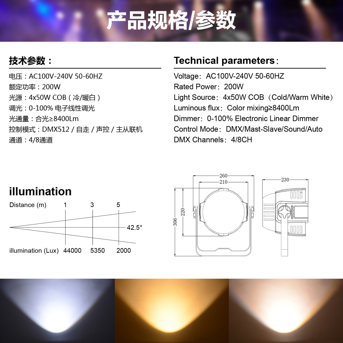 四眼面光ランプステージライトcob観客ライトled 200wウェディングバー公演生放送補光ライト