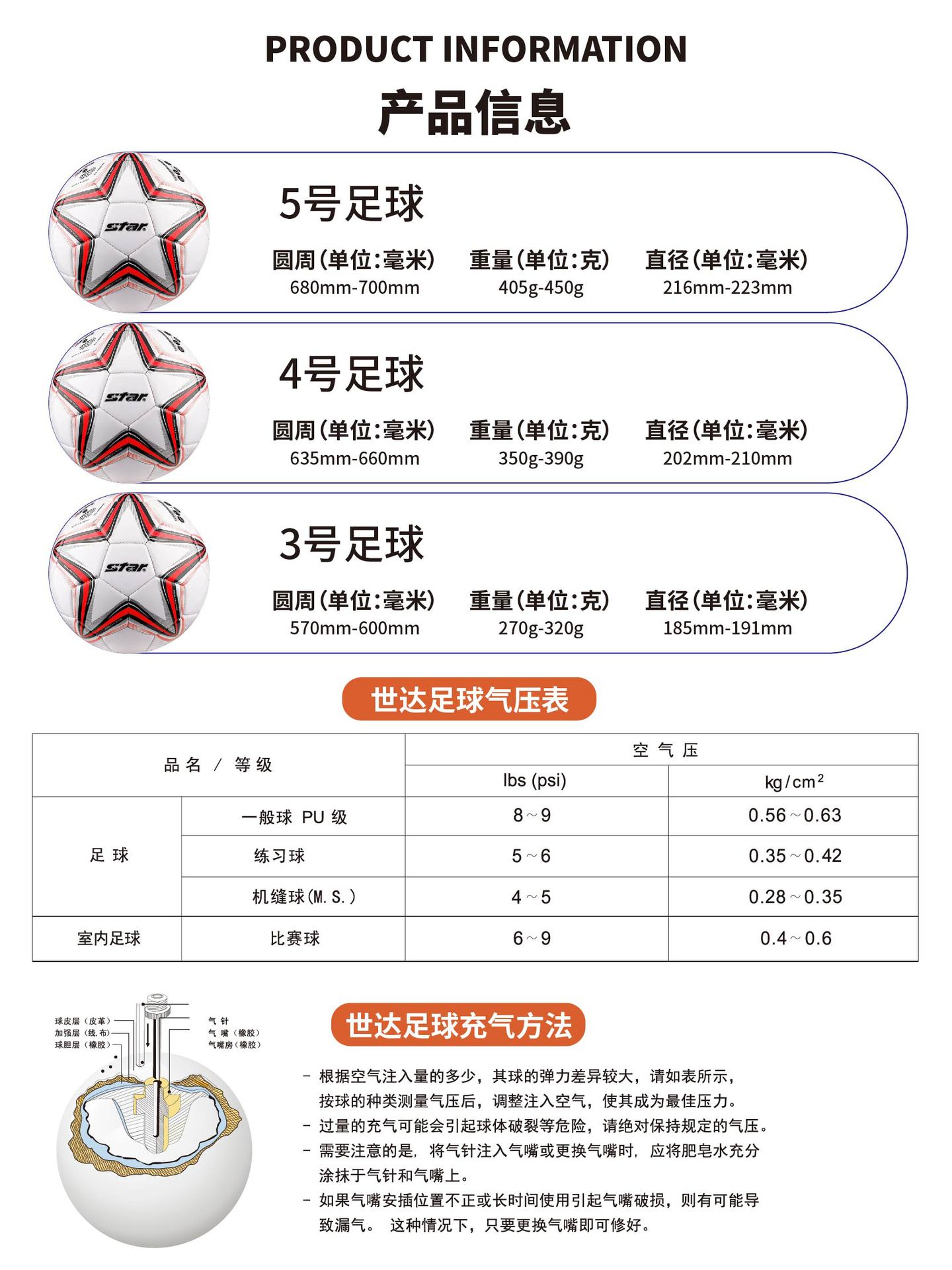 Star/世达足球1000 SB375成人学生体考比赛手缝足球SB225P 2000
