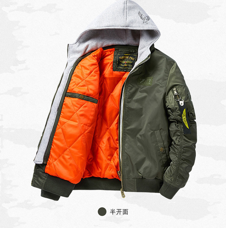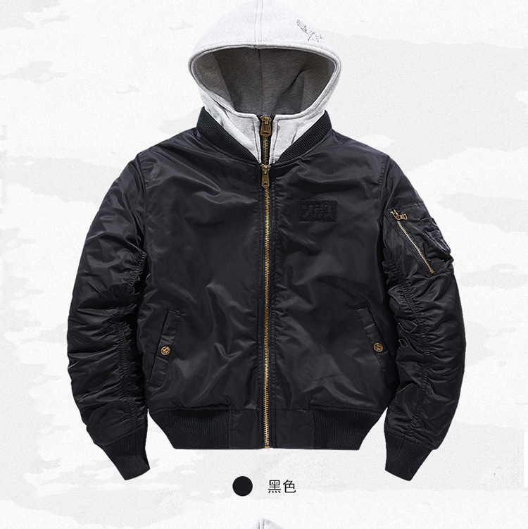 秋冬の男性用厚手のベルベットジャケット、フード付きフェイクツーピースワークジャケット、アメリカンフライトスーツ、暖かいフード付きコットンコート