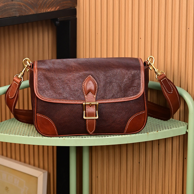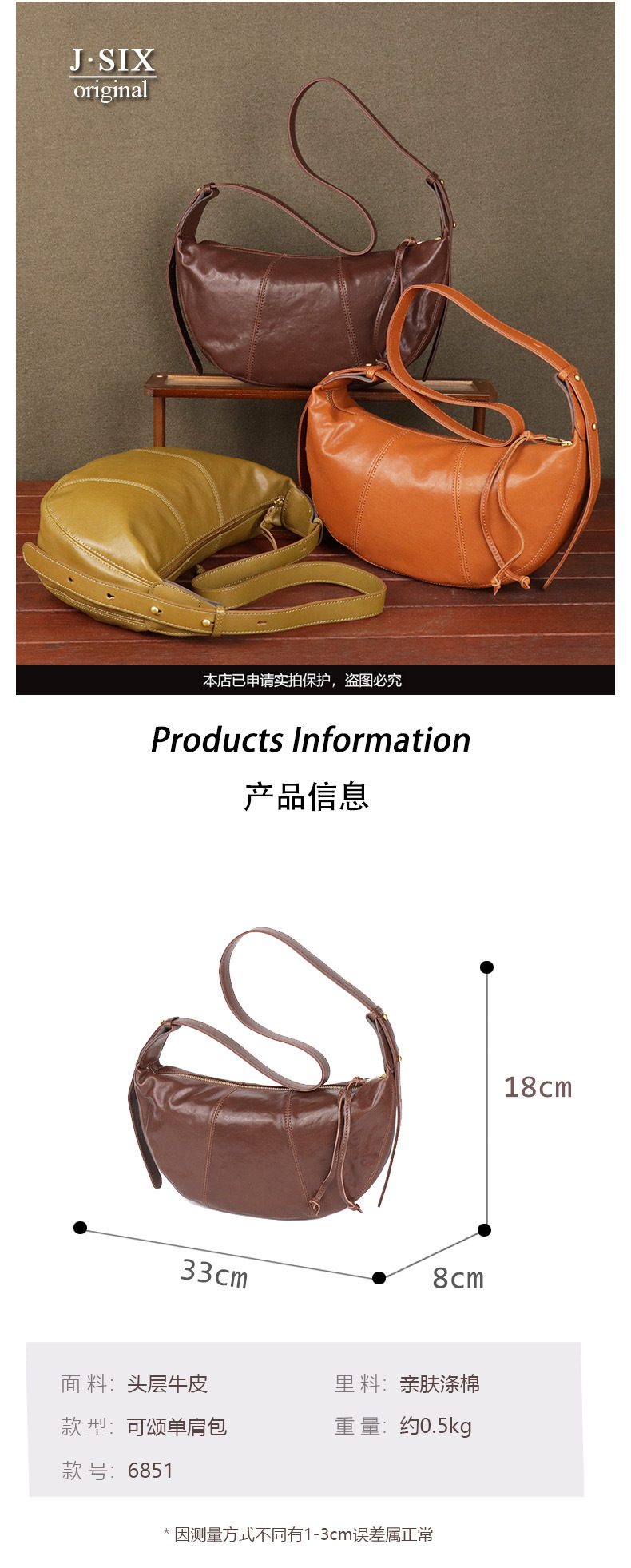 [J6]真皮头层牛皮复古双肩带车缝线斜挎包单肩包手提包腋下包6912