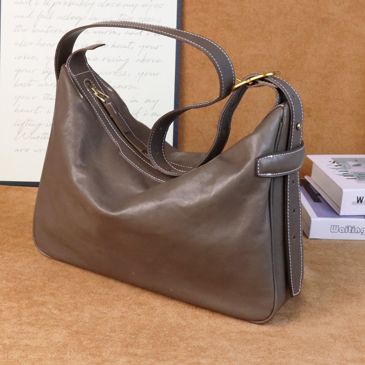 J6 一層クリスタルベジタブルタンニンなめし牛革ショルダーバッグ、脇の下バッグ、ホーボーバッグ、大容量通勤バッグ、大容量6861