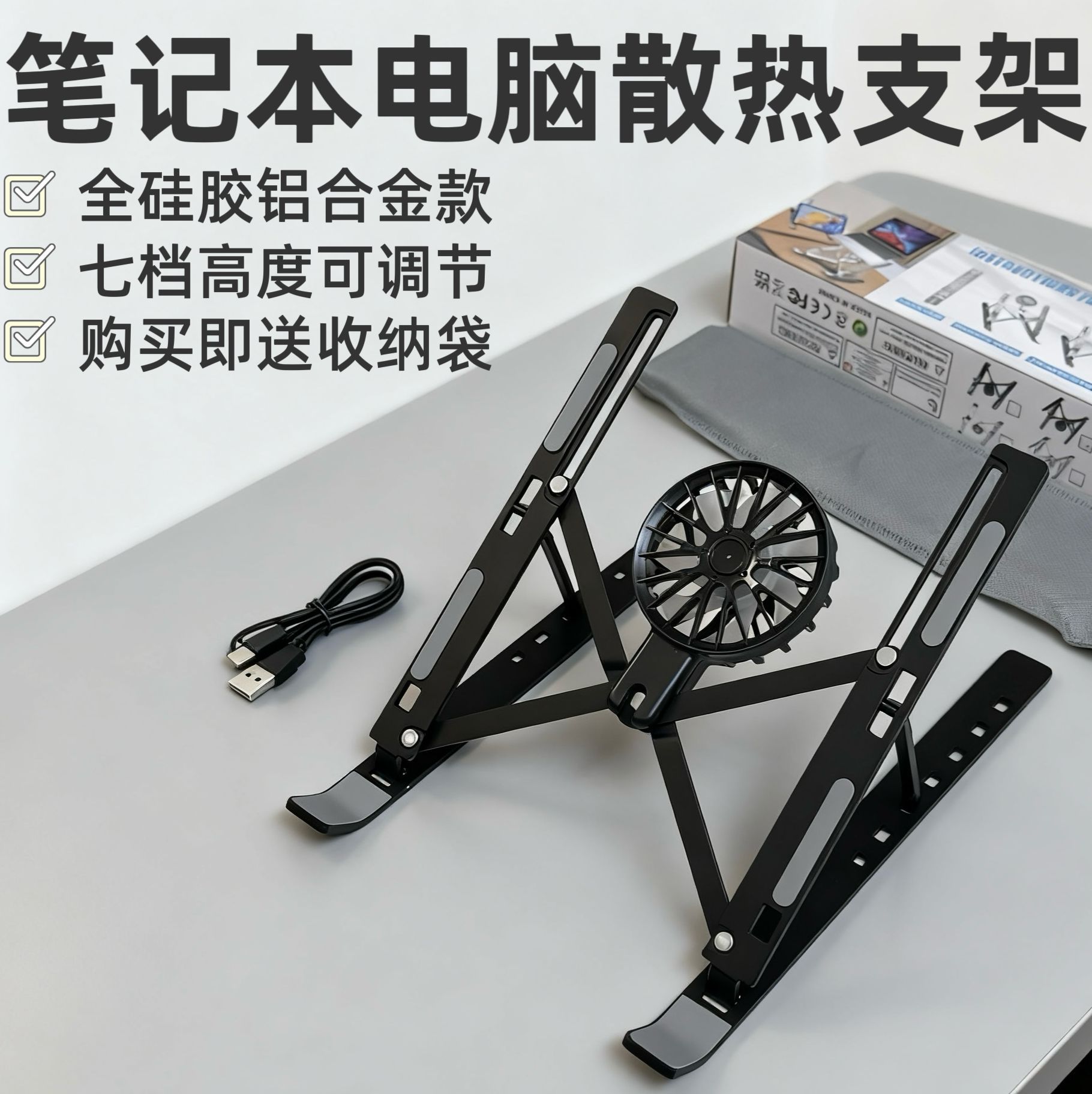 铝合金笔记本电脑支架带风扇散热便捷折叠增高散热底座立式托架