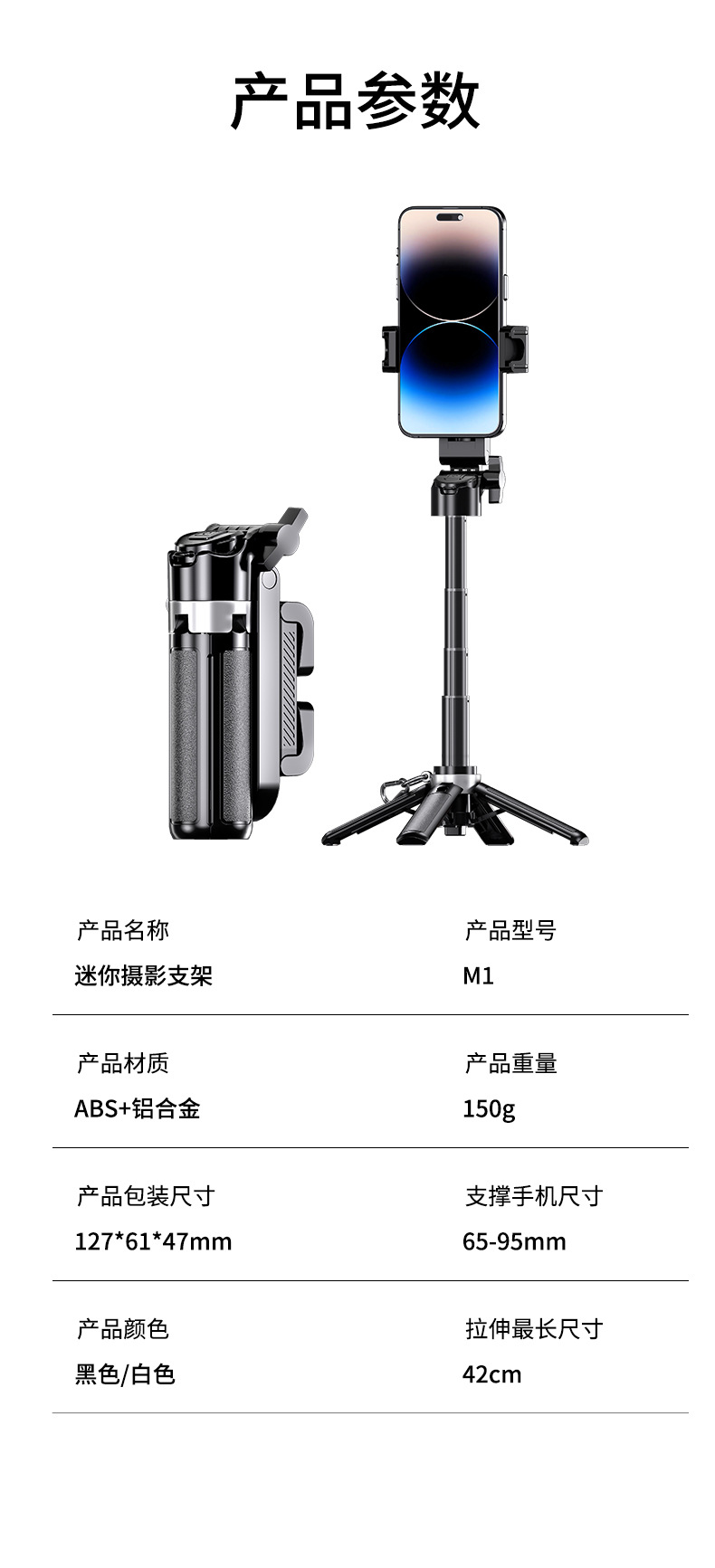 M1迷你自拍杆可伸缩小巧便携蓝牙遥控防抖手机助拍器桌面直播支架