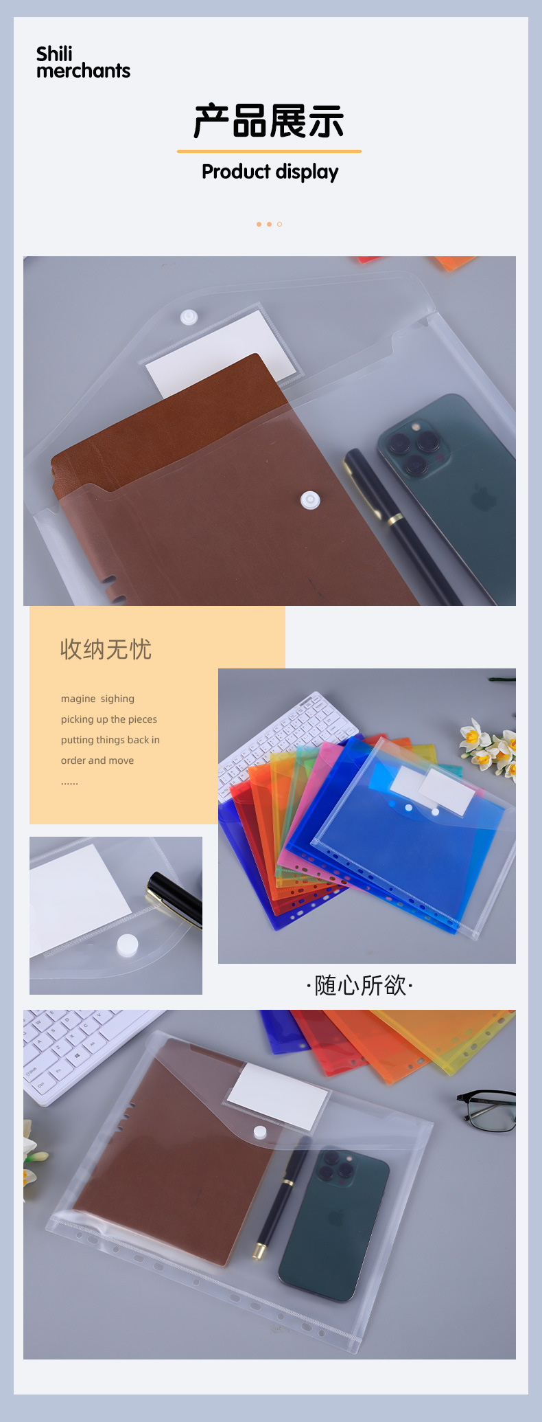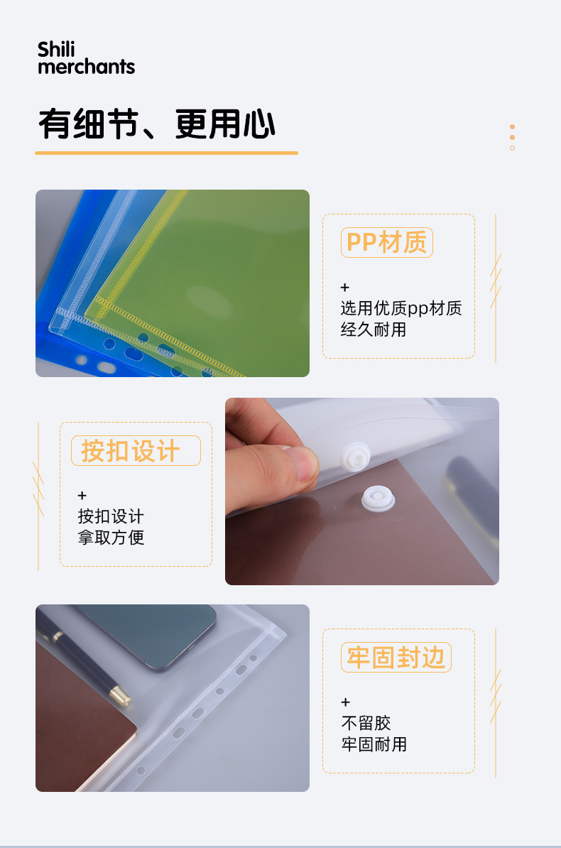 A5マジックテープ書類袋カラーボタン袋現物PP書類袋収納書類印刷広告ロゴ卸売り