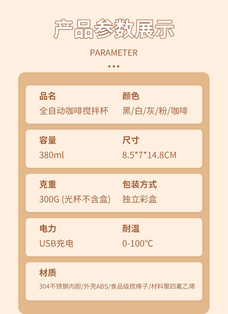 咖啡充电式不锈钢咖啡杯电动磁力杯子保温杯磁吸搅拌便携