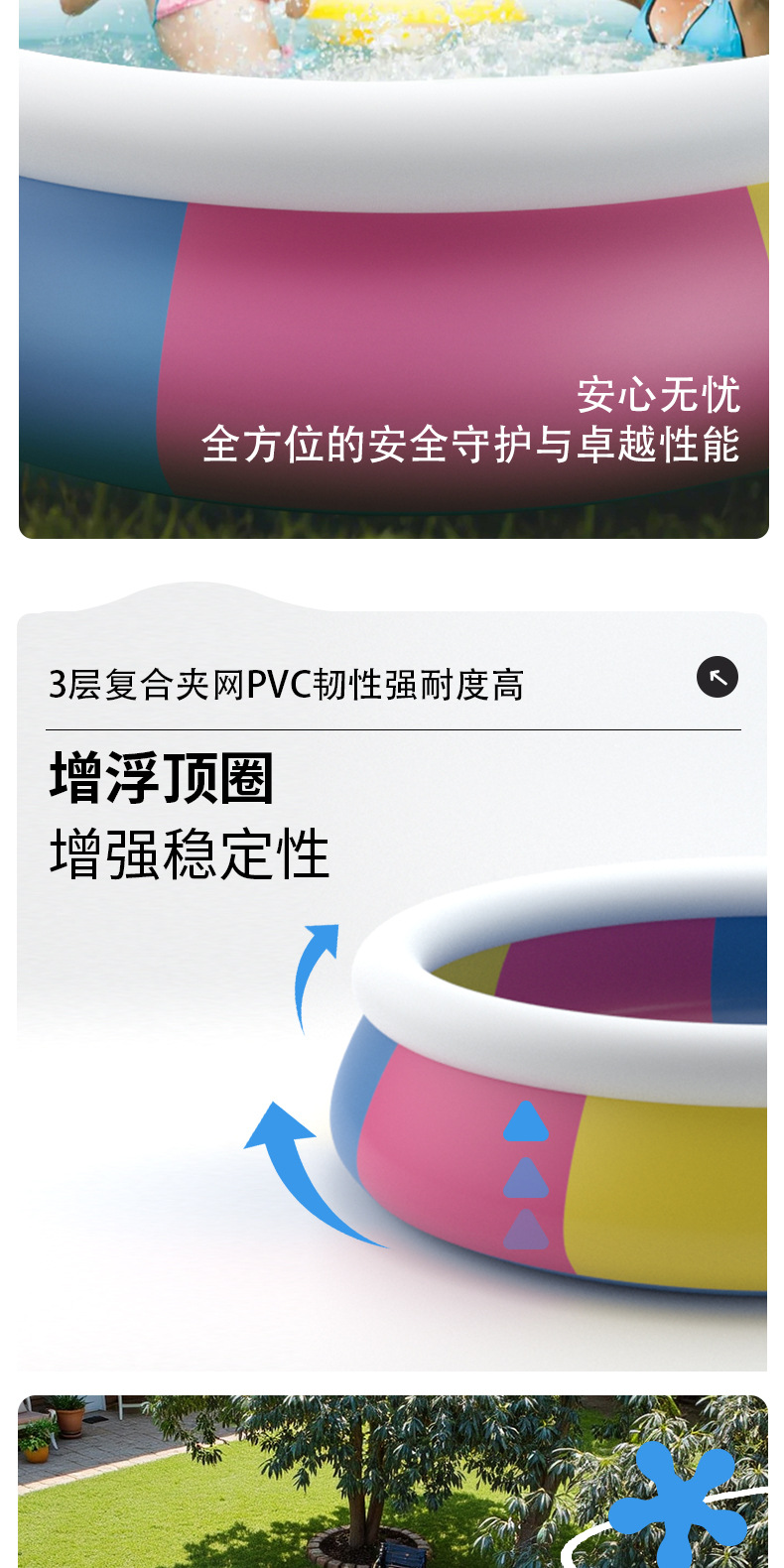 亚马逊游泳池家用户外大型家庭水池儿童充气游泳池聚会派对戏水池