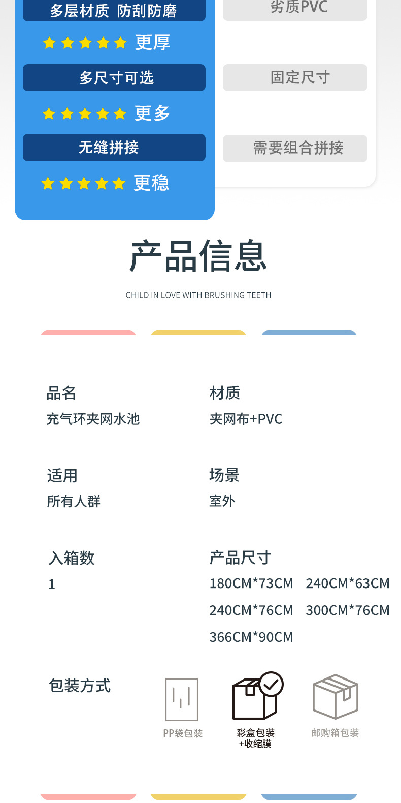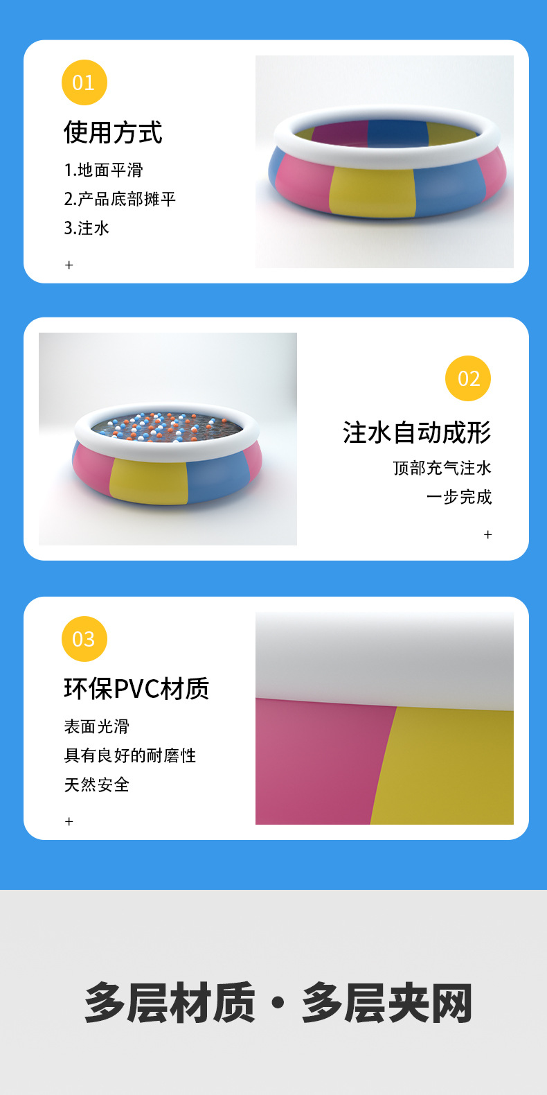 充气游泳池儿童家用水上户外超大号家庭水池多彩耐用加厚PVC泳池
