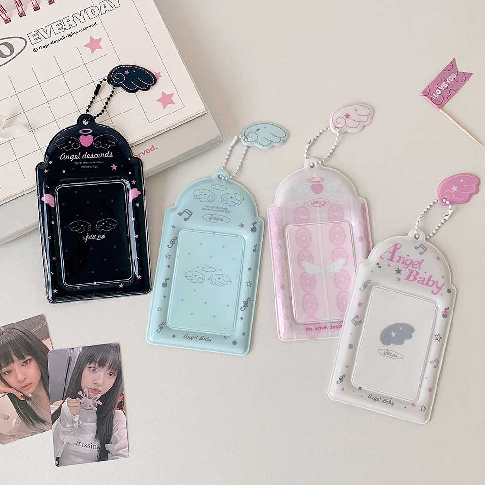 インオリジナル天使の羽 pvc カードホルダー 3inch ポラロイドディスプレイセットスターチェイシングスモールカード収納ペンダントペンダント