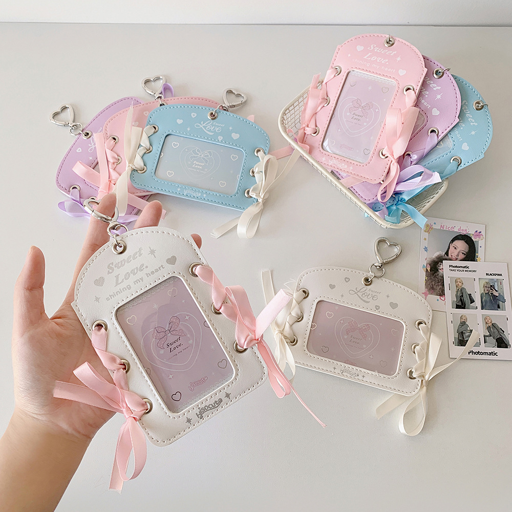 ins韓国風リボンフォトアルバム学生IDカード収納アルバムかわいいスターチ�ングカードディスプレイミニペンダントアルバム