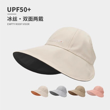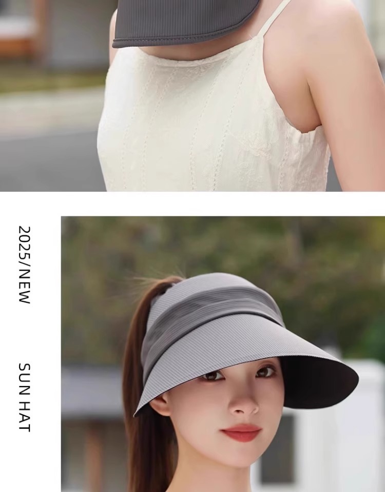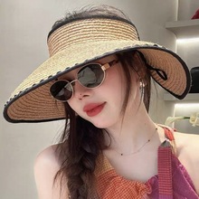 新しい両面折りたたみ式ポニーテール付き大きなつばの日よけ帽子、女性用、夏の顔見せ、小さな日焼け止め、シンプルな中空帽子