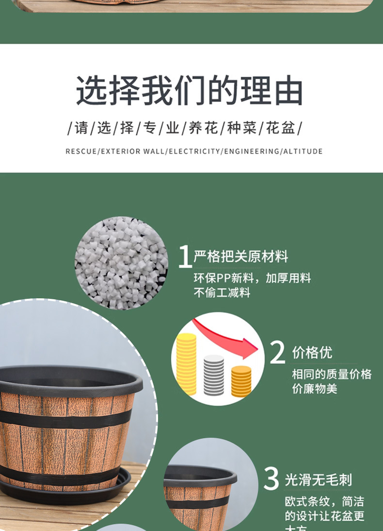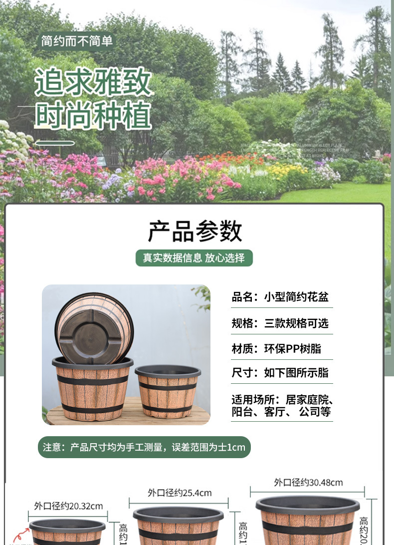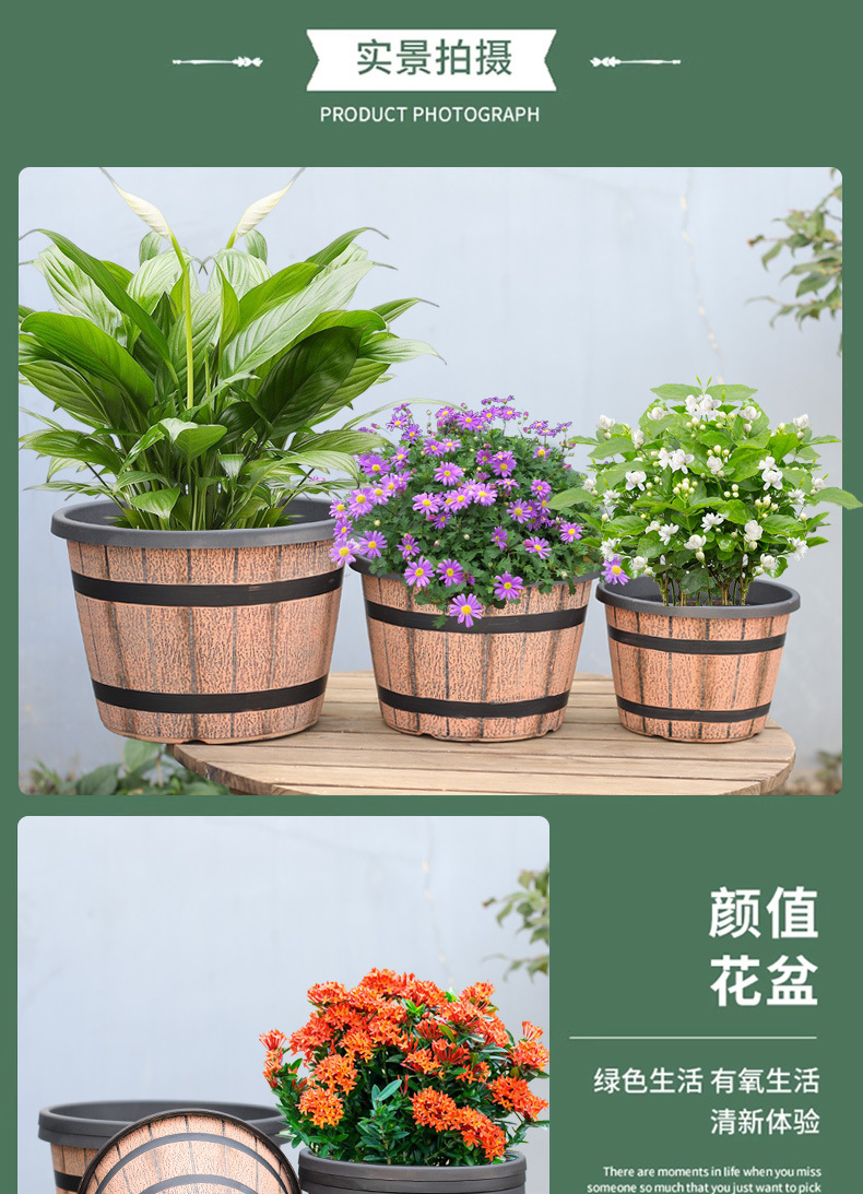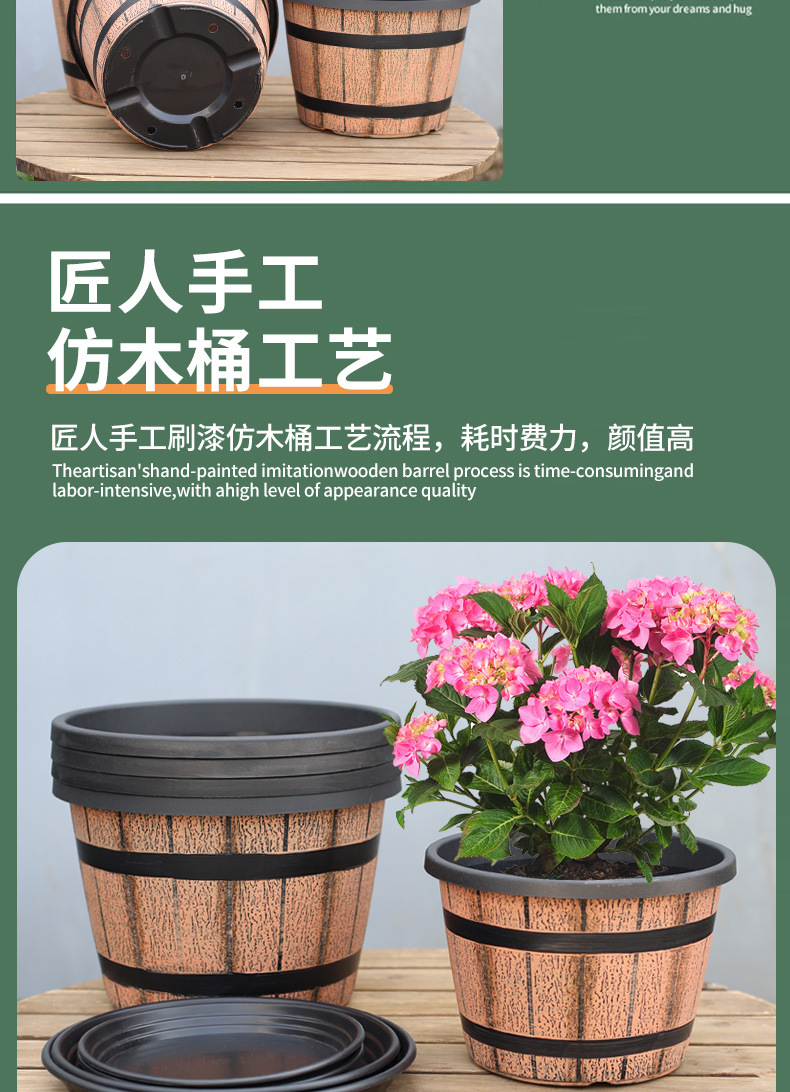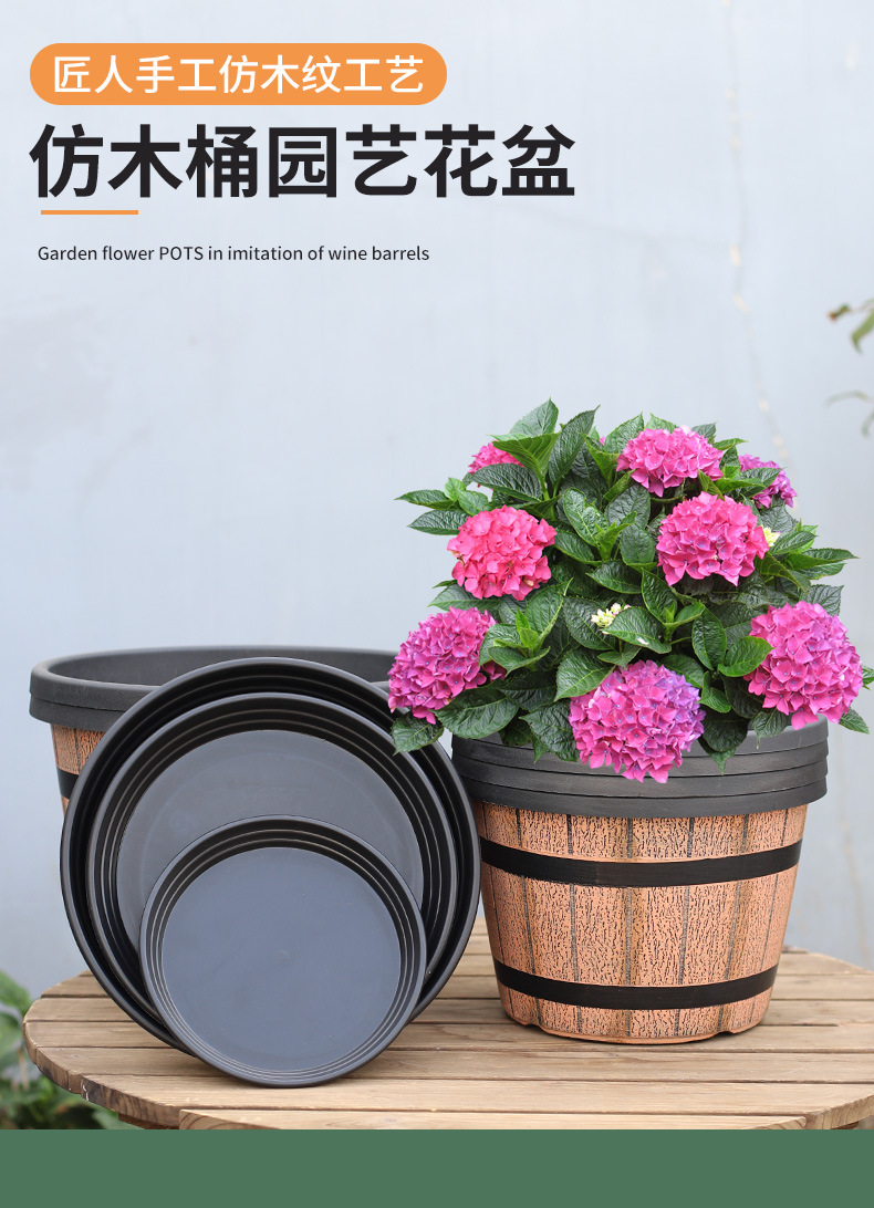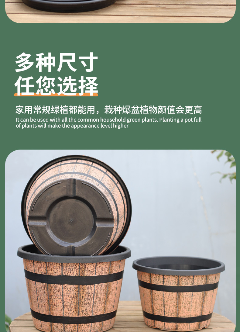 厚みのあるプラスチック模造木樽レトロ植木鉢園芸極楽鳥モクレンラウンド大型植木鉢大型植物植木鉢