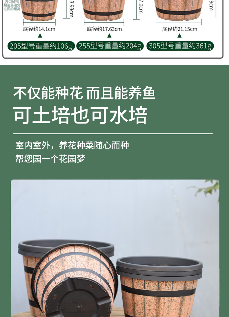 仿木桶酒桶塑料花盆加厚特大号无孔可水培铜钱草碗莲睡莲盆缸