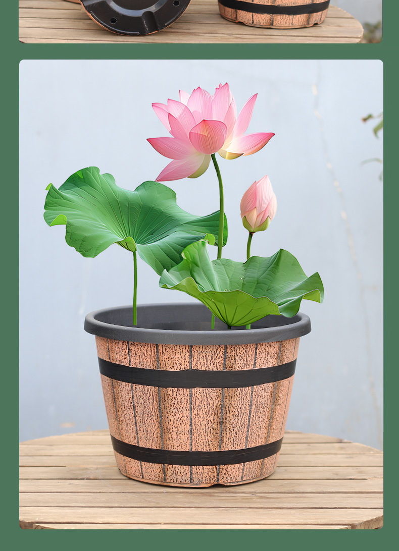 模造酒樽プラスチック製植木鉢、厚くて耐久性のある特大サイズ、家庭用、無孔水耕栽培、蓮、睡蓮、水草用