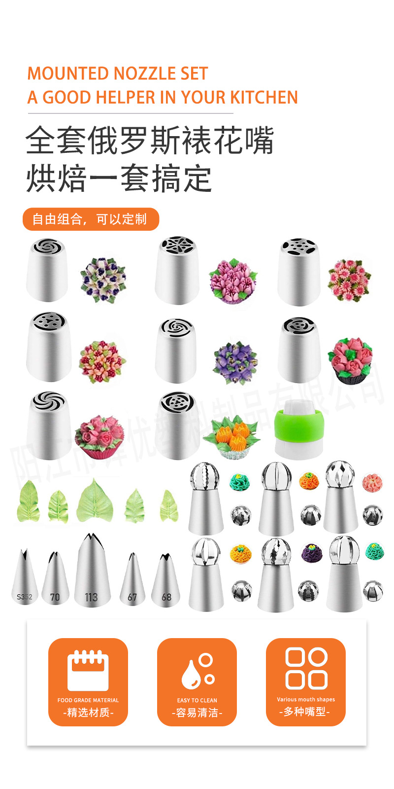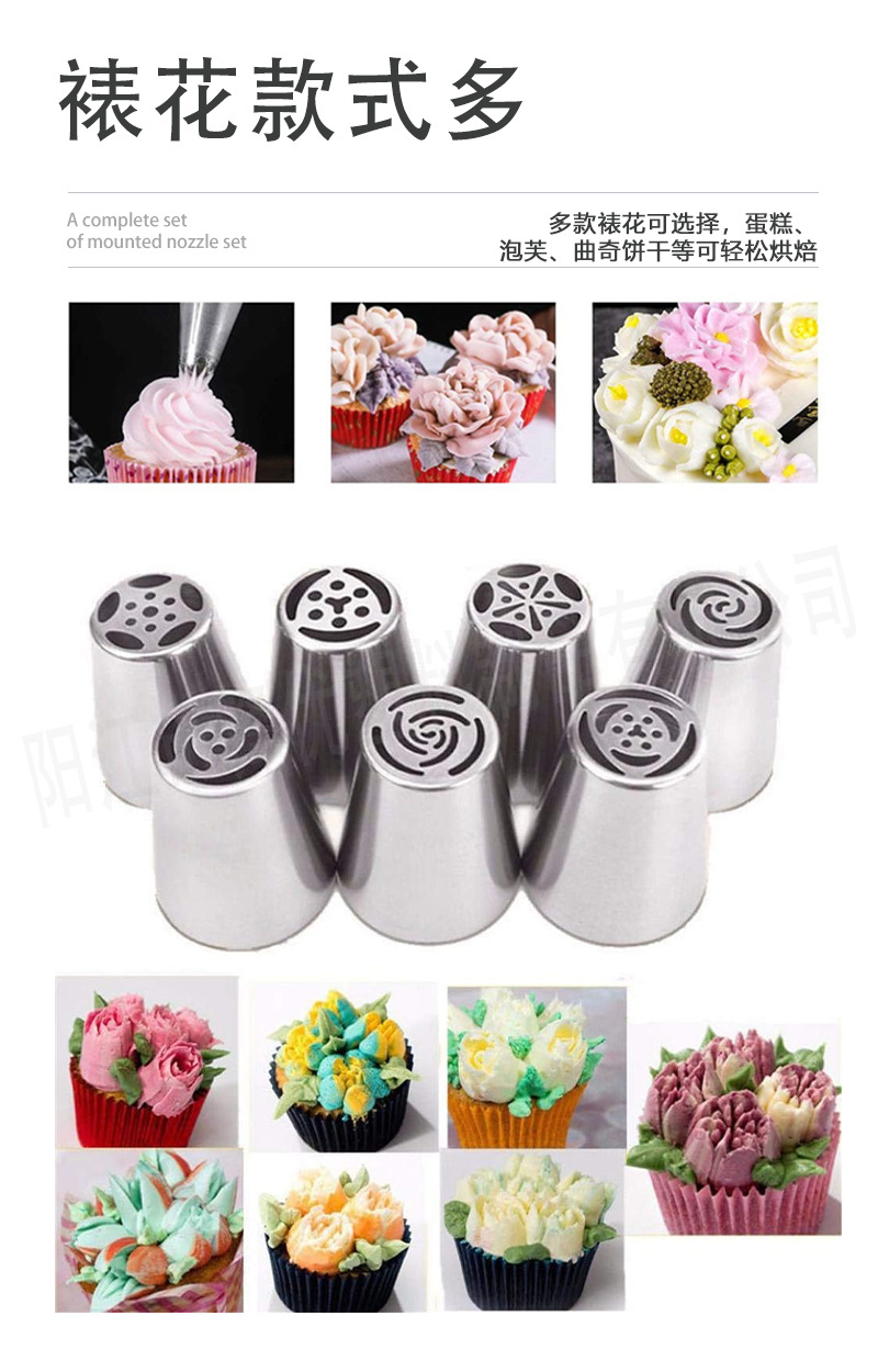 跨境新款俄罗斯裱花嘴大号不锈钢蛋糕裱花嘴奶油喷嘴DIY烘焙工具