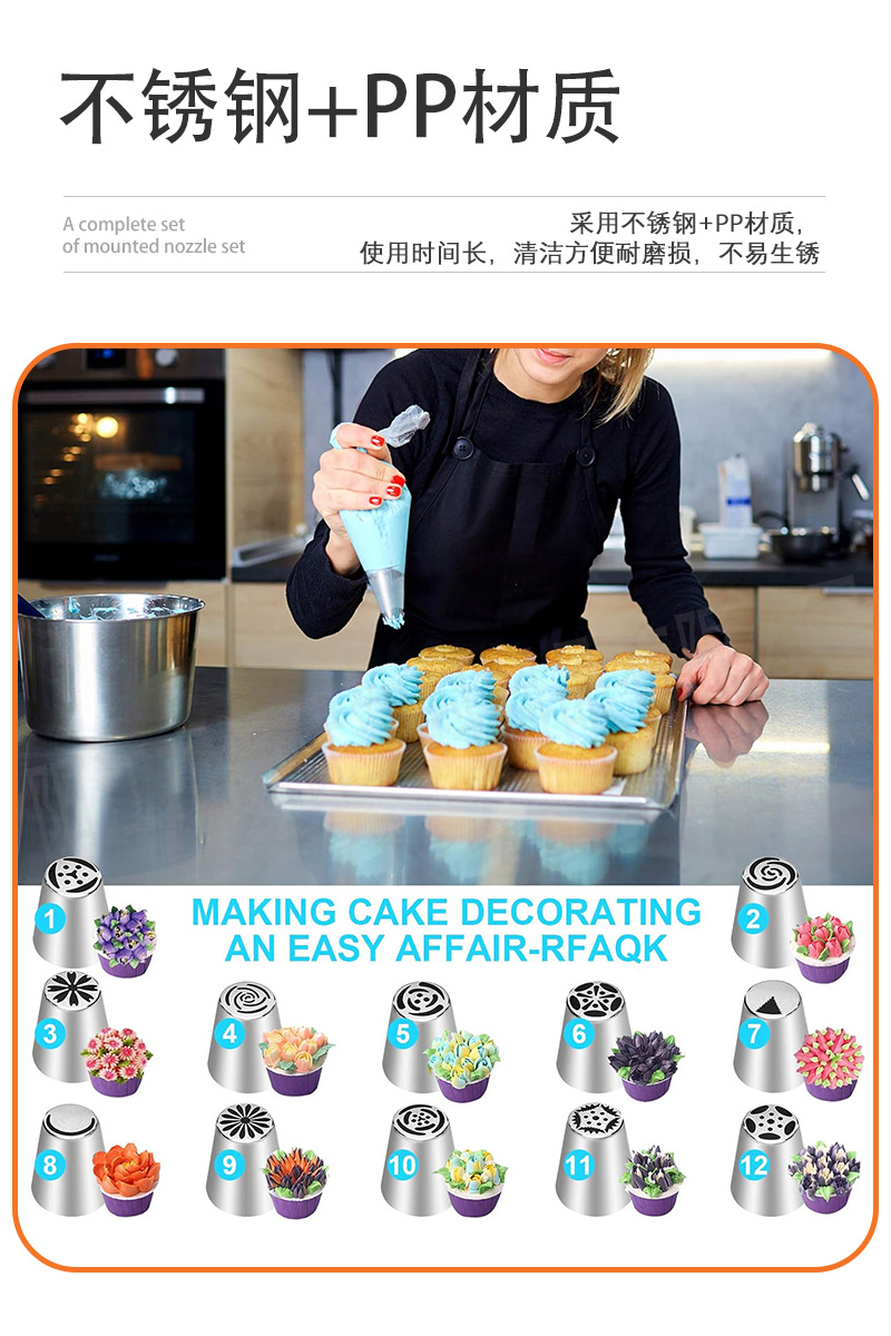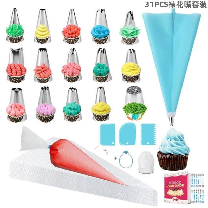 アマゾン31点ステンレス製表装花口セットシリコン製結束バンドEVA押出袋クリームスクレーパー焙煎ツール