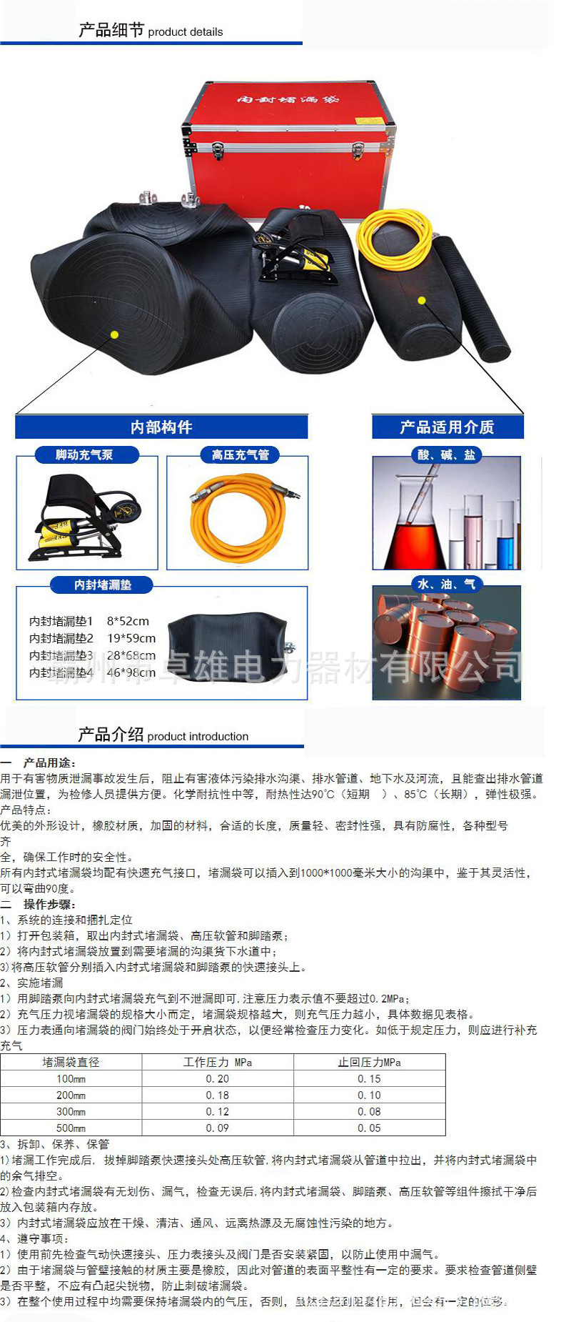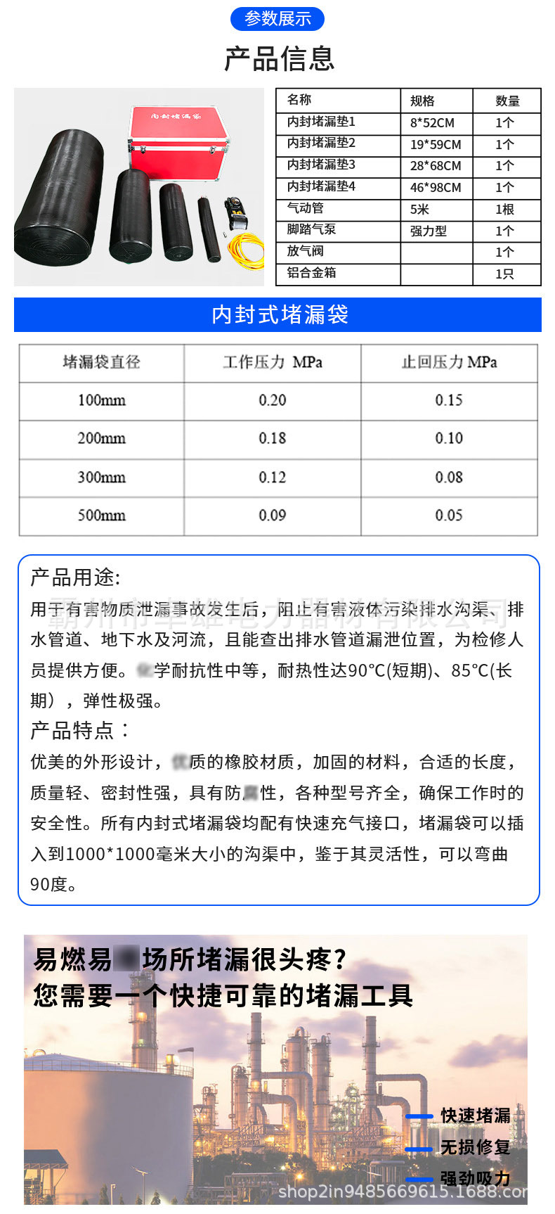 内部シール漏れ防止ツール、ゴム製漏れ防止エアクッション、ポータブル圧力シールバッグ、クイック漏れ防止ツール
