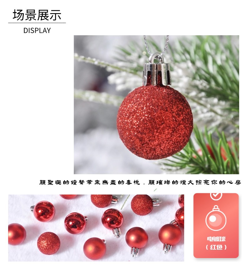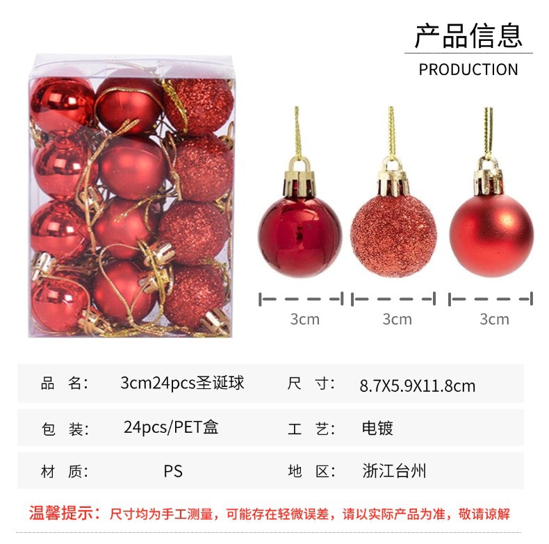 国境を越えたクリスマスボールカラークリスマスツリーペンダント24明るいクリスマス装飾クリスマスセット3cmプラスチックボール