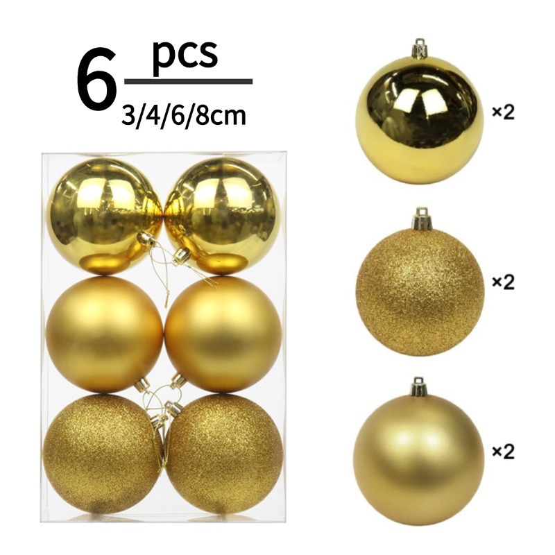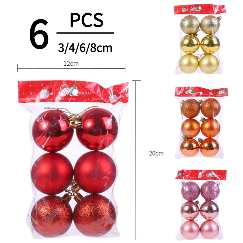 国境を越えたクリスマス6pcs袋入りクリスマスボールの明るい装飾品プラスチック8cmクリスマスツリーの飾り6cmクリスマスボール