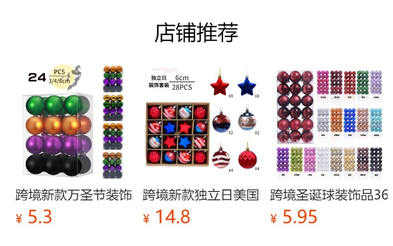 国境を越えた新しいハロウィーン装飾品クリスマスボールセット24プラスチックボールストラップ4クリスマスクリスマスツリーストラップ