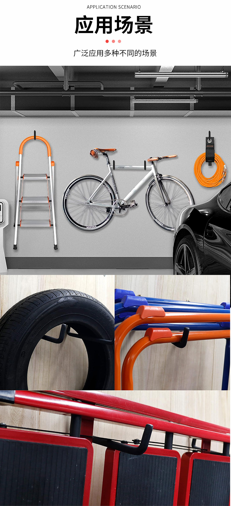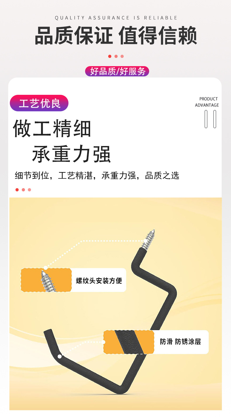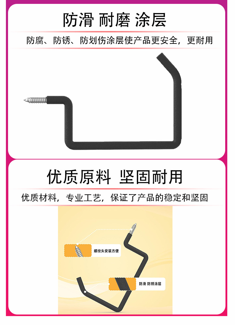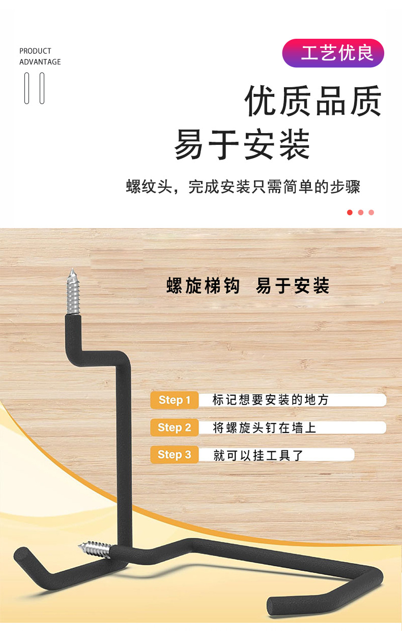 墙壁重型工具旋入式梯子钩 壁挂式车库储物自行车单车梯子挂钩