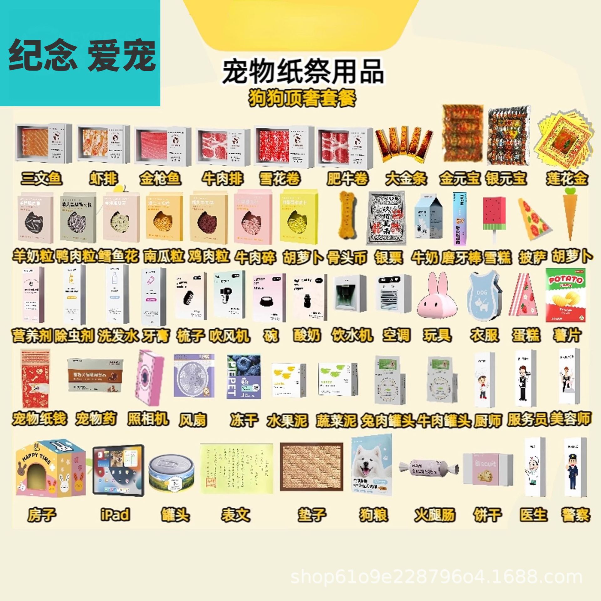 宠物冥币宠物纪念猫狗吃喝用宠物祭祀头七周年套餐立体