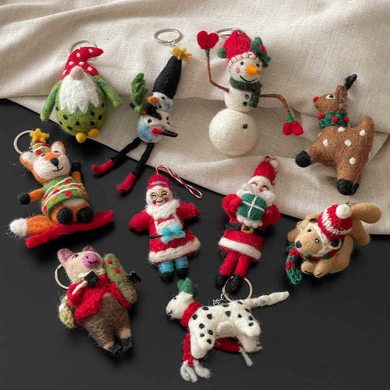 可爱圣诞节羊毛毡挂件尼泊尔手工玩偶毛绒配饰立体动物钥匙扣2025