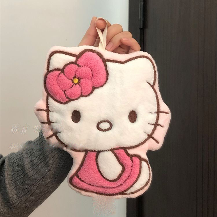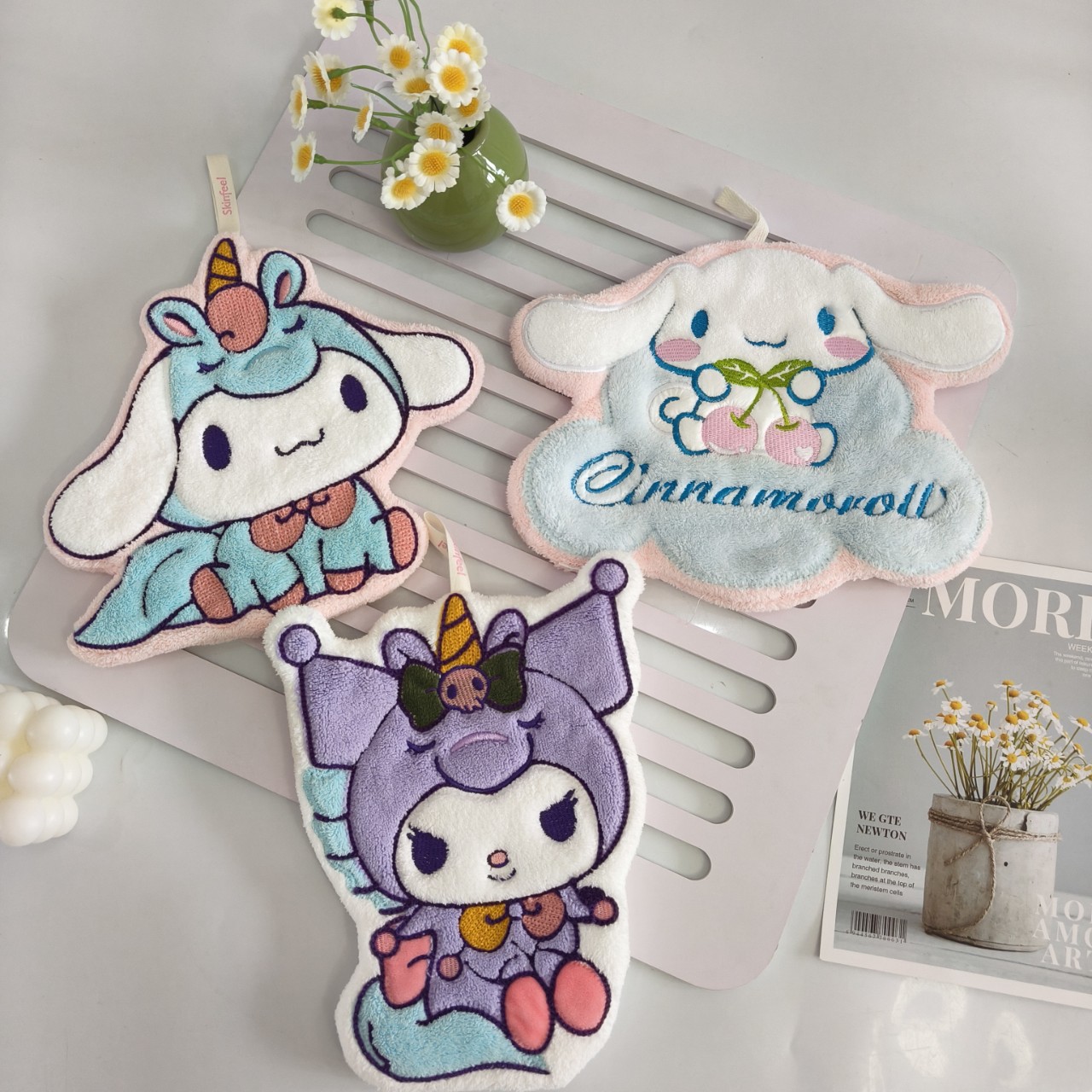 サンリオ漫画刺繍ハンギングハンドタオル子供用かわいいソフト吸収性タオル二層厚みのあるコーラルベルベット