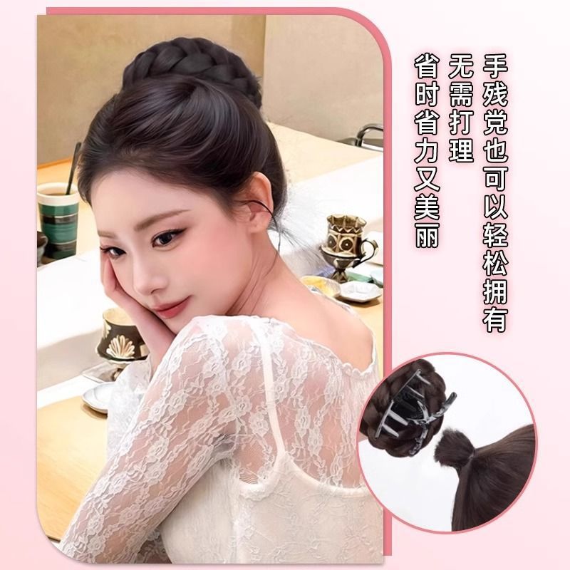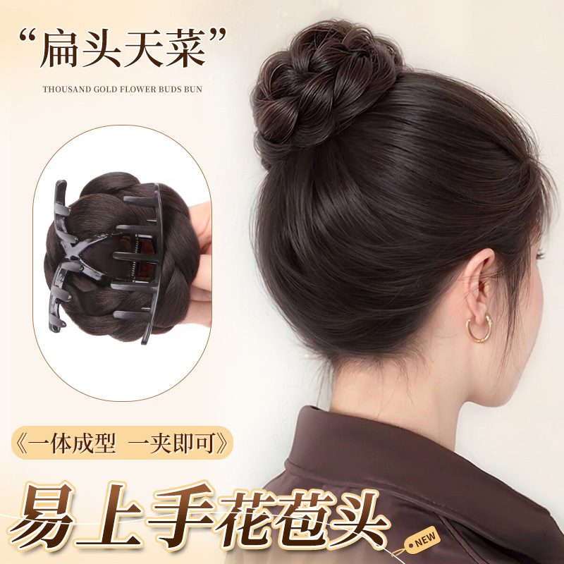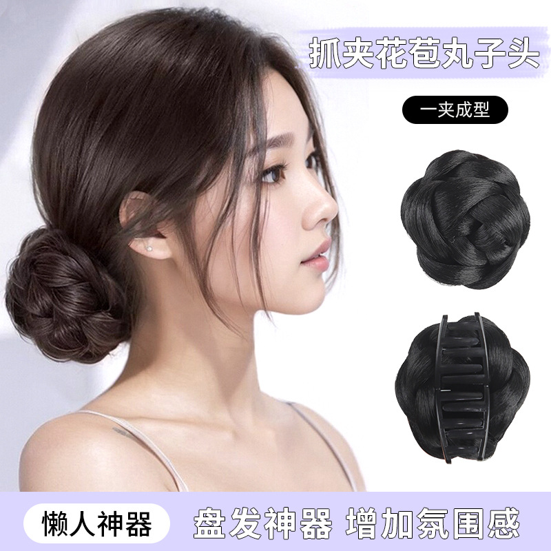 抓夹花苞丸子头假发髻盘发蓬松自然扁头神器后脑勺增发量千金发包