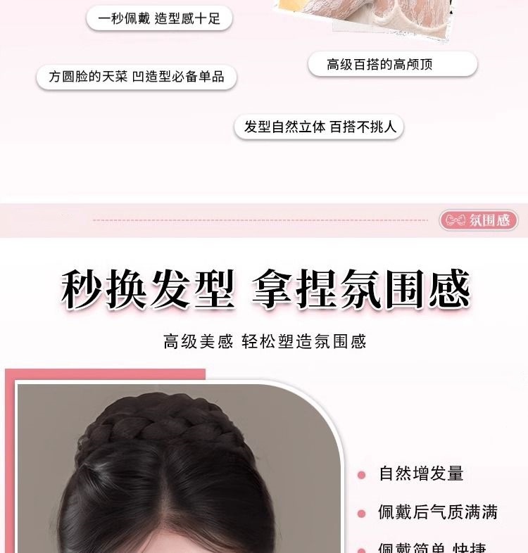 丸頭ウィッグ、ヘアゴム、気質、高頭蓋、ヘアクリップ、つぼみヘアアーティファクト、後頭部ウィッグ、ヘアバッグ