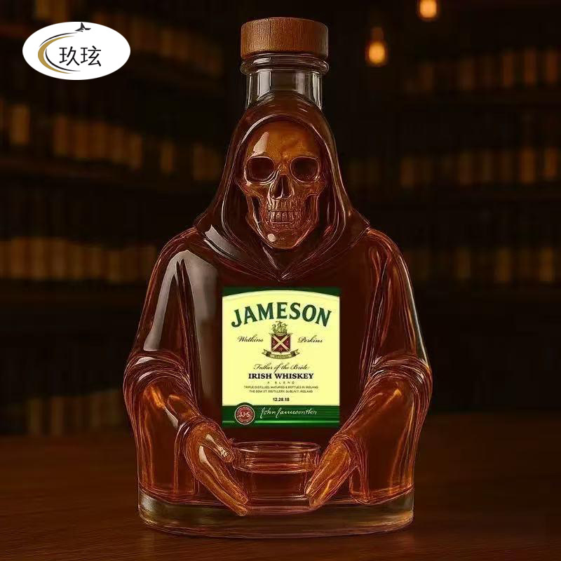 卸売クロスボーダークリエイティブウイスキーガラスワインボトル独立した形状のデカンタワインボトル