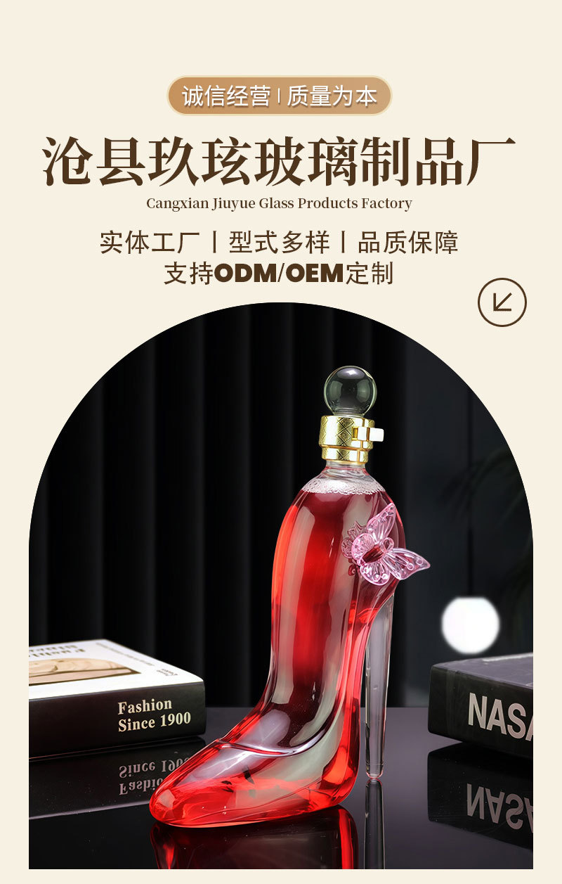 メーカー既製酒卸売クリエイティブ特別な赤ワインボトル高ホウケイ酸増粘ワインボトルハイヒールデカンタ