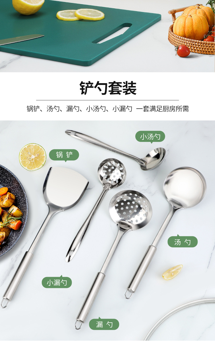 304 ステンレス鋼食品グレードのシリコンスパチュラノンスティック調理スパチュラ高温耐性スープザルお粥キッチン用品セット