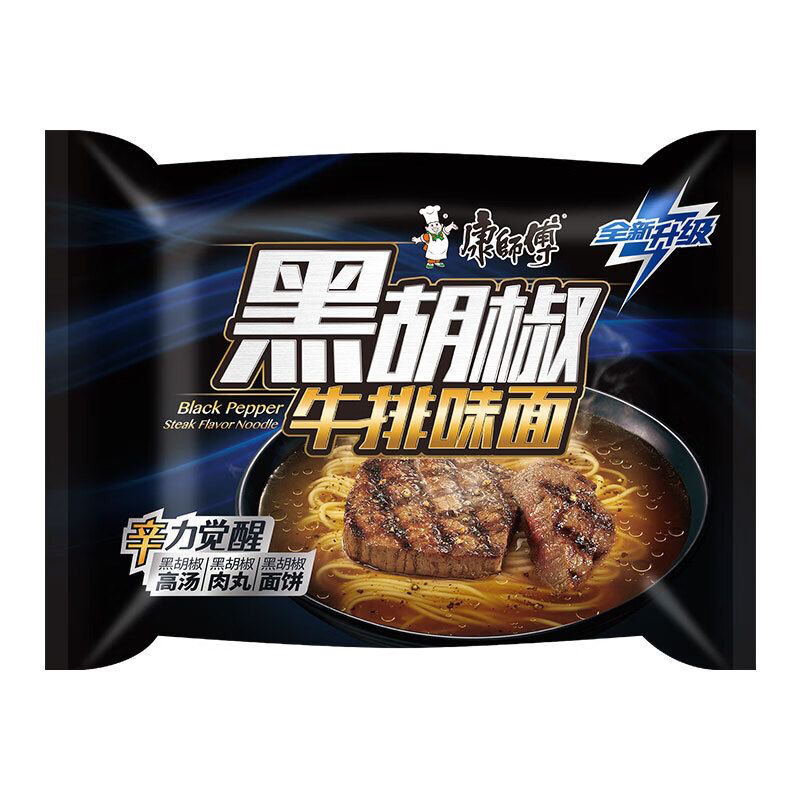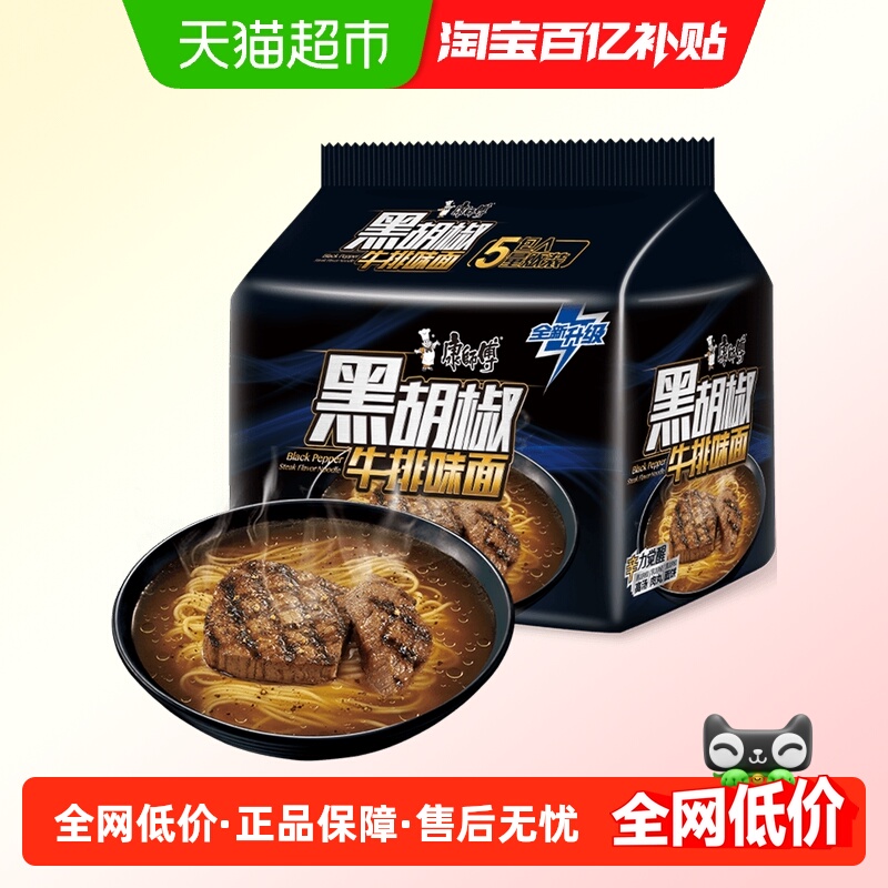 康师傅方便面经典黑胡椒牛排面装煮面泡面速食