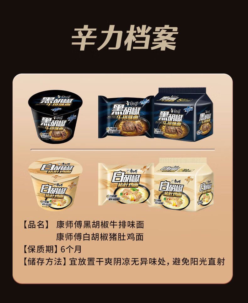康师傅黑胡椒牛排味泡面白胡椒猪肚鸡味方便面桶装胡椒牛排味速食