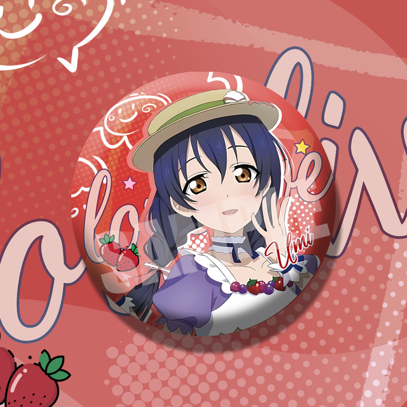 ラブライブお台場連動いちご水団南小鳥高坂穂乃果星空凛グッズ75mmビッグバッジ