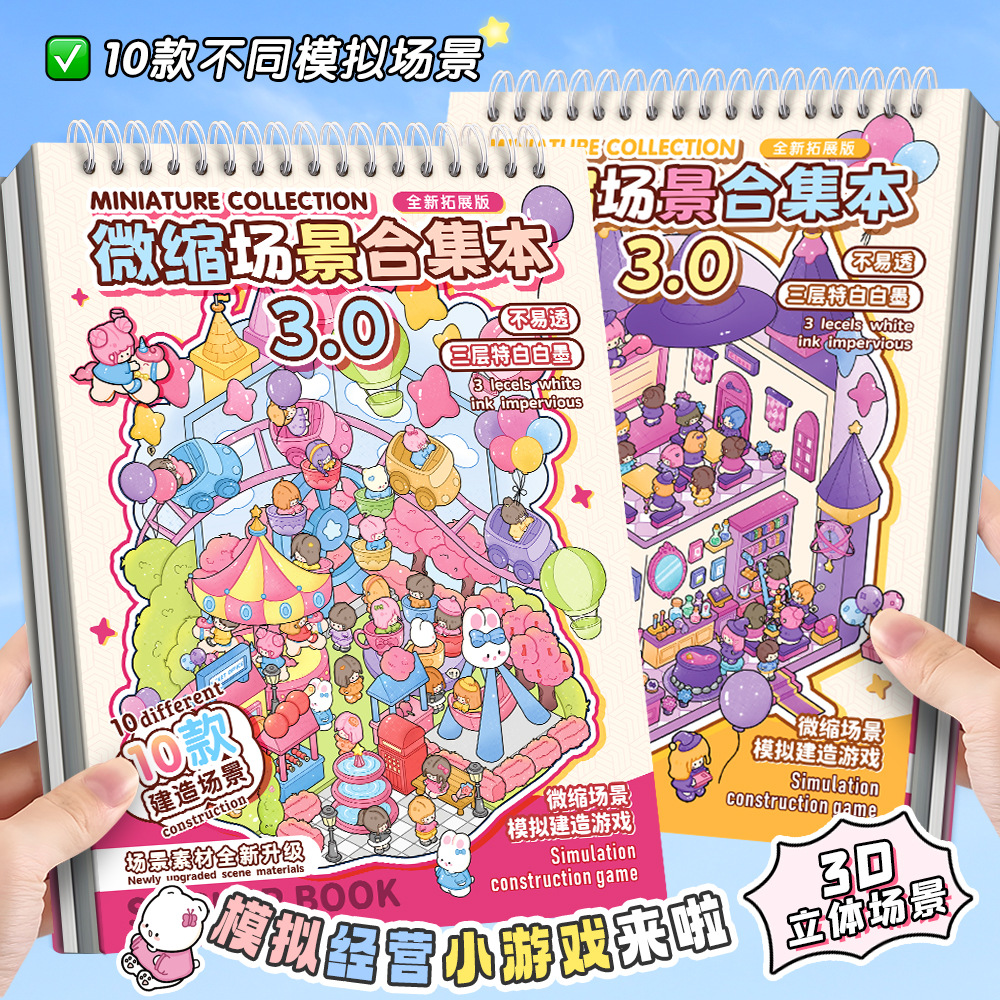 创意微缩造景贴纸合集本模拟经营场景立体小屋贴纸儿童手工安静书