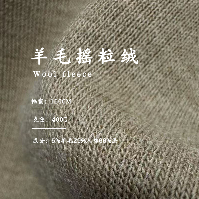 400g爆款羊毛摇粒绒针织面料5%羊毛混纺29%人棉亲肤单面加厚抗寒