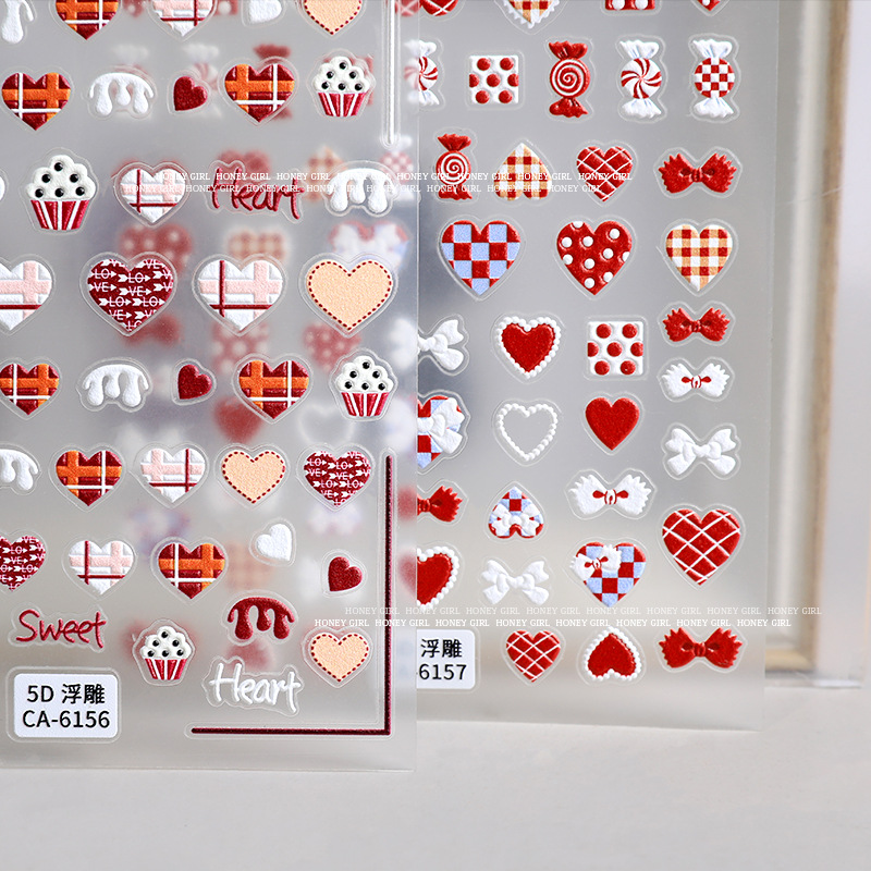 5D立体ネイルアートステッカー、中空リボン、キャンディー、英語文字ステッカー、ネイルデコレーション、インスタ風