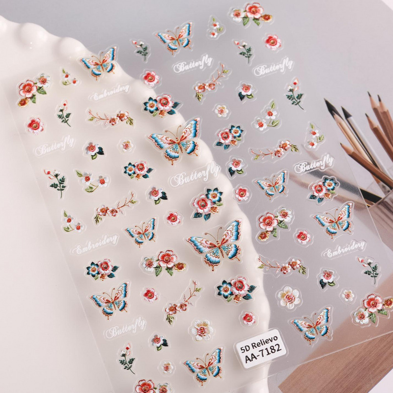 オリジナル刺繍蝶ネイルステッカー 5D エンボス加工三次元中国の花蝶ネイルアートステッカーアクセサリー AA スタイル