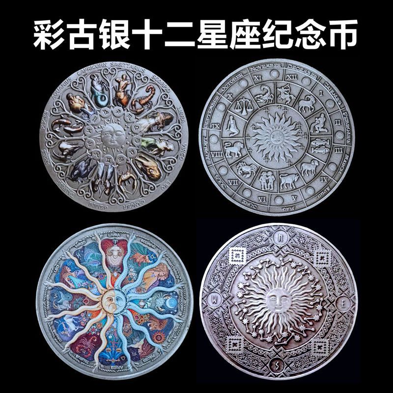 跨境外贸纪念币 欧美彩色十二星座纪念章仿古银徽章 12星座外国币
