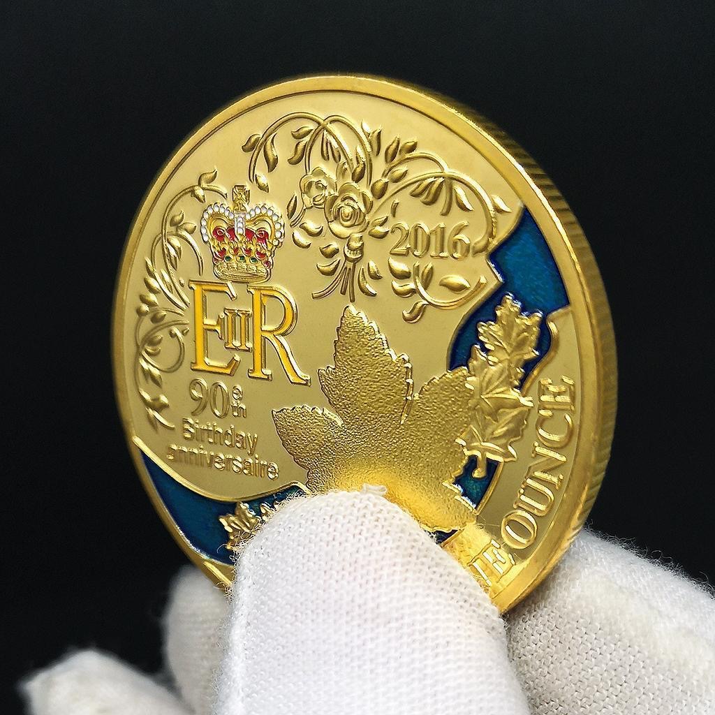 エリザベス女王 90 歳のクラフトシルバーメッキ記念メダル、カナダのメープルリーフゴールドコインハードギフトとして